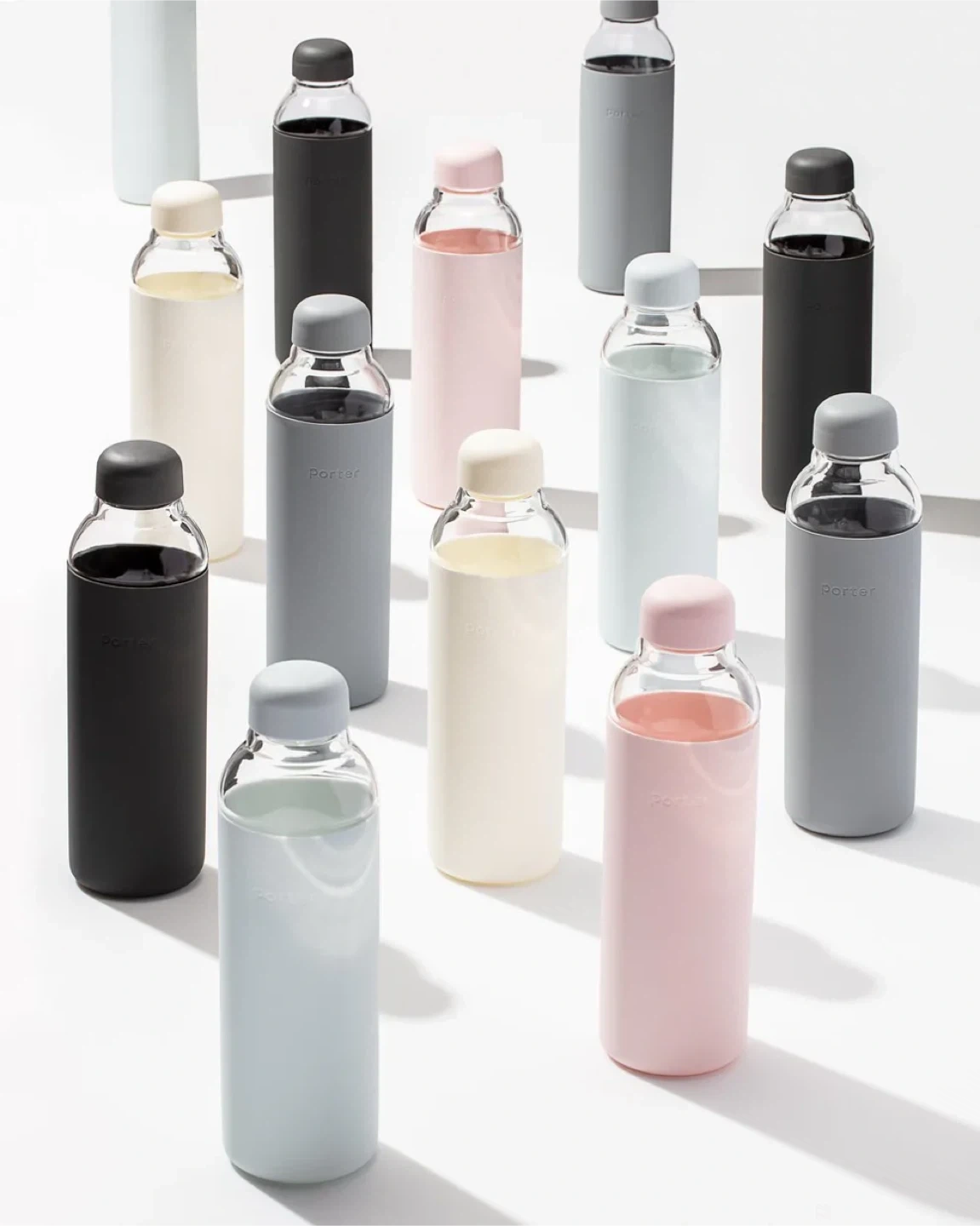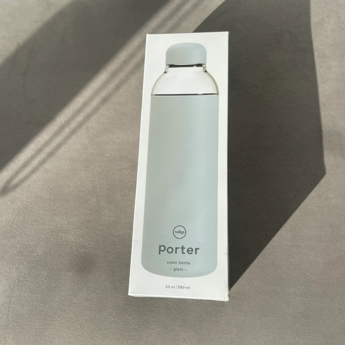 This is the W&P Porter water bottle, perfect for everyday hydration. It's made from durable, lightweight glass and wrapped in protective silicone. sleek design. 590ml (20 oz) capacity.