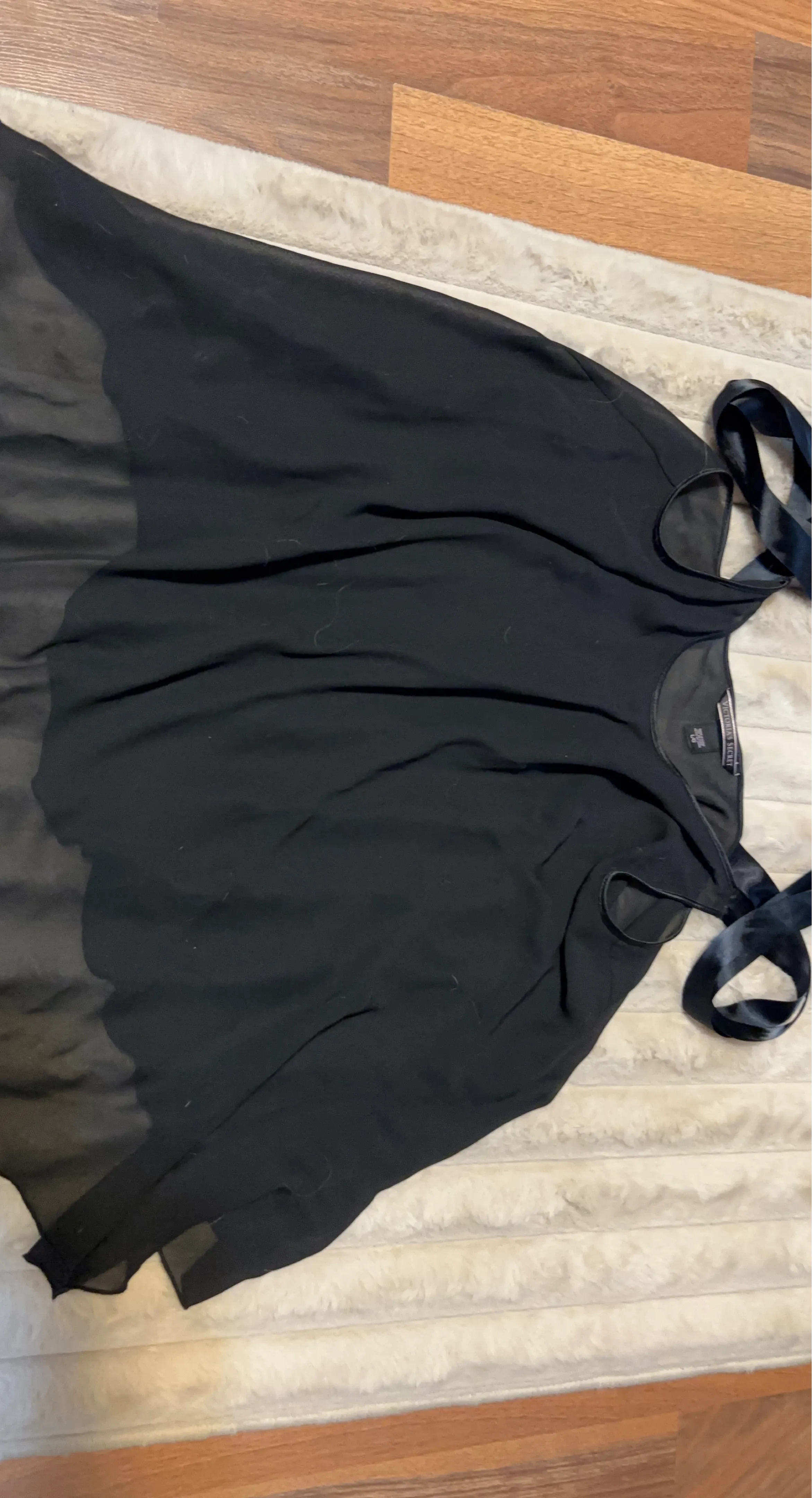 This black Victoria's Secret camisole top is made of a sheer fabric with satin ribbon straps. It features a relaxed fit and a flowy design. Available in size LG. BRAND NEW!