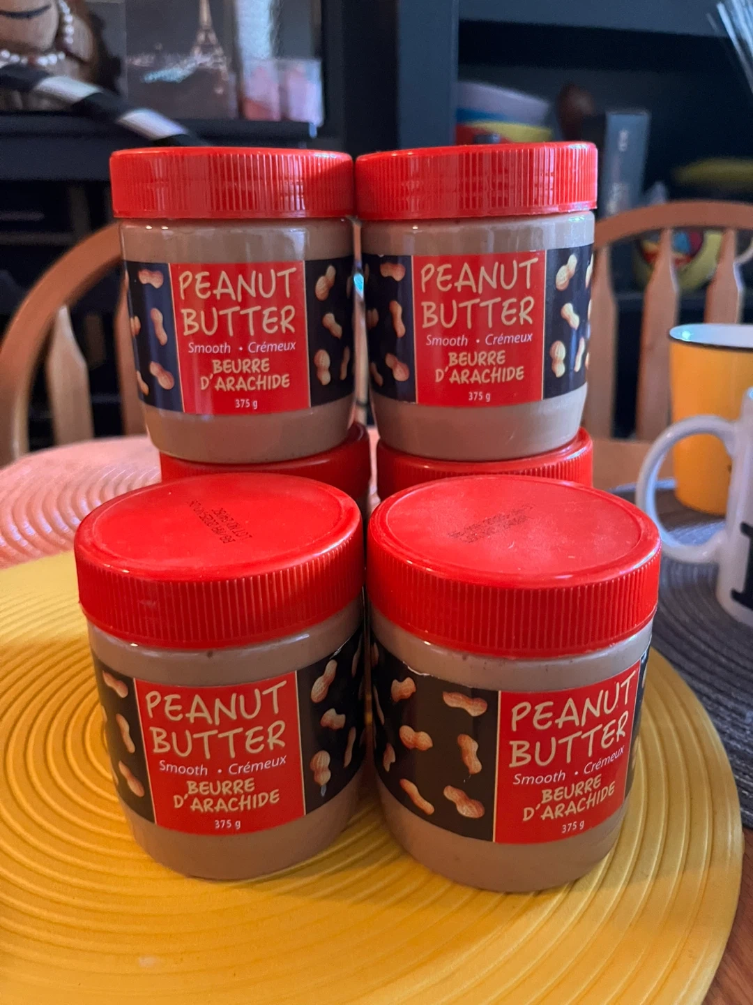 Get your hands on this set of four smooth peanut butter jars. Each jar contains 375g of delicious peanut butter. It's perfect for sandwiches, baking, or just a quick snack!