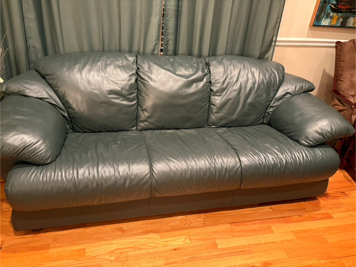 Buy & SellGreen Leather Sofa and loveseatGreen Leather Sofa and loveseat$225This is a green Natuzzi leather 2 pieces sofa and loveseat. With plush cushions. Pick up onlyConditionLike newWHERE TO MEETCheck LocationView MapSELLERSueEltingville50 reviews0 chats·1 favorites·6 viewsSEND CHAT TO SELLERHi Sue! I’m interested in your listing.Hi Sue! I’m interested in your listing.Get the Karrot app to chatSign In to chat
