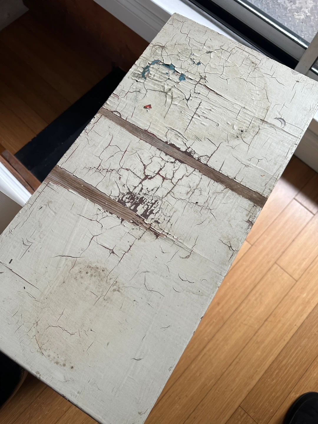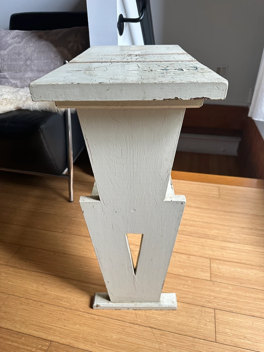 A really cool solid wood mcm side table with great modernist lines. Solid sturdy shape just needs a fresh coat of paint!