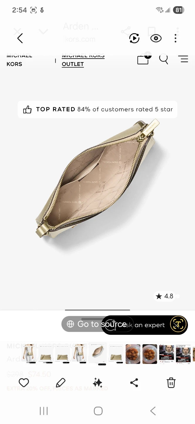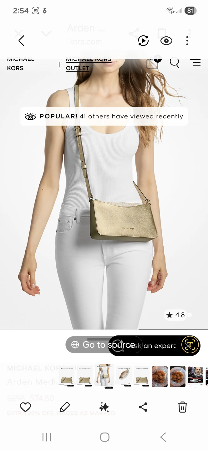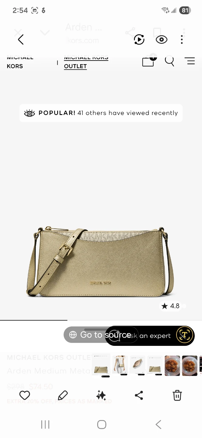 This Michael Kors Arden shoulder bag is crafted from metallic leather. It features a zip closure and an adjustable strap. The interior lining has the signature Michael Kors logo pattern. It's a stylish accessory for everyday wear or evenings out!