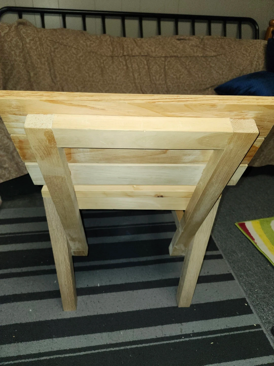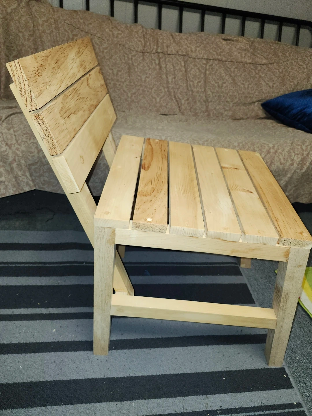 I'm selling a wooden chair. It's a simple, sturdy design, perfect for a small space or as an accent piece. made of light-coloured wood. Also great for patio