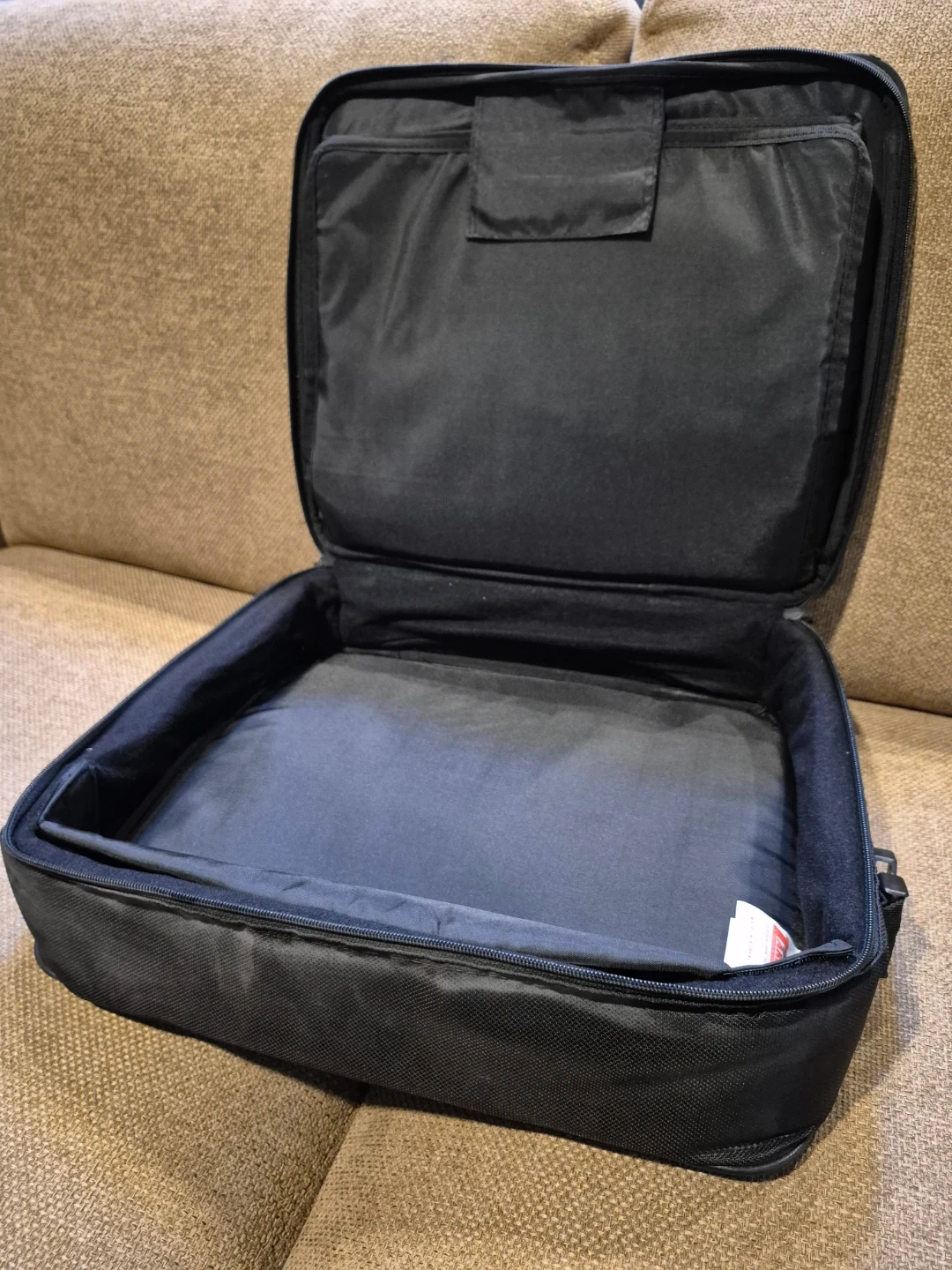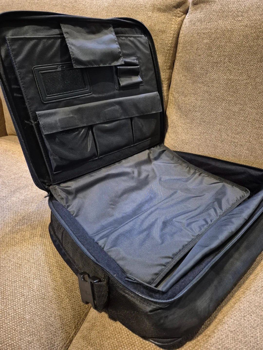 Dedicated padded laptop compartment to fit devices up to 14", keeping your valuables safe and secure. Zippered, padded laptop compartment with document divider & front storage pocket holds phone and other accessories plus a integrated pass-through trolley strap system for convenient travel.