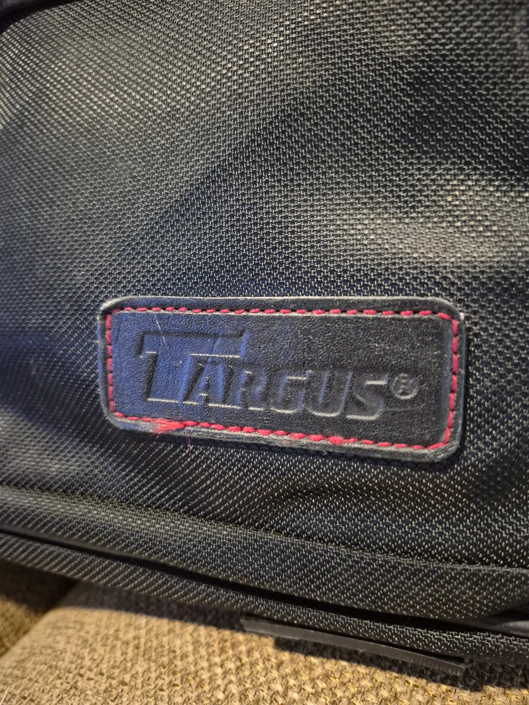 SPECIFICATIONS: Fits laptops up to 14", with Universal Compatibility. Dimensions 13.5" x 15.5" x 3" Black with red stripe.