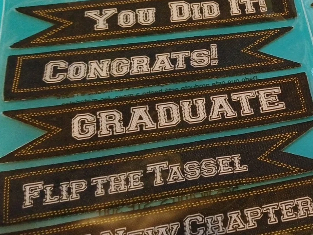 Selling a set of Jolee's Boutique graduation-themed banner stickers! Perfect for adding a celebratory touch to graduation cards, scrapbooks, or party decorations. Each banner has a unique message like 'You Did It!', 'Congrats!', 'Graduate', 'Flip the Tassel', and 'A New Chapter'. There are 5 pieces in total!