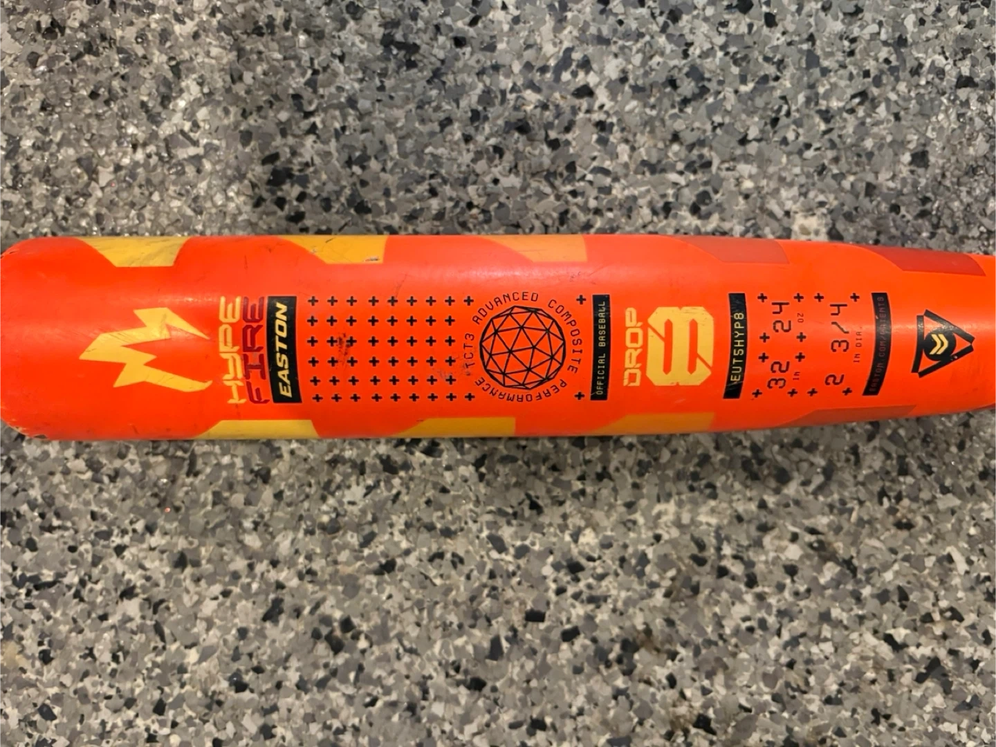 This is a 2025 Easton HYPE Fire baseball bat (-8). It's 32 inches long and weighs 24 ounces with a 2 3/4 inch diameter. Used for 1 season and well taken care of.