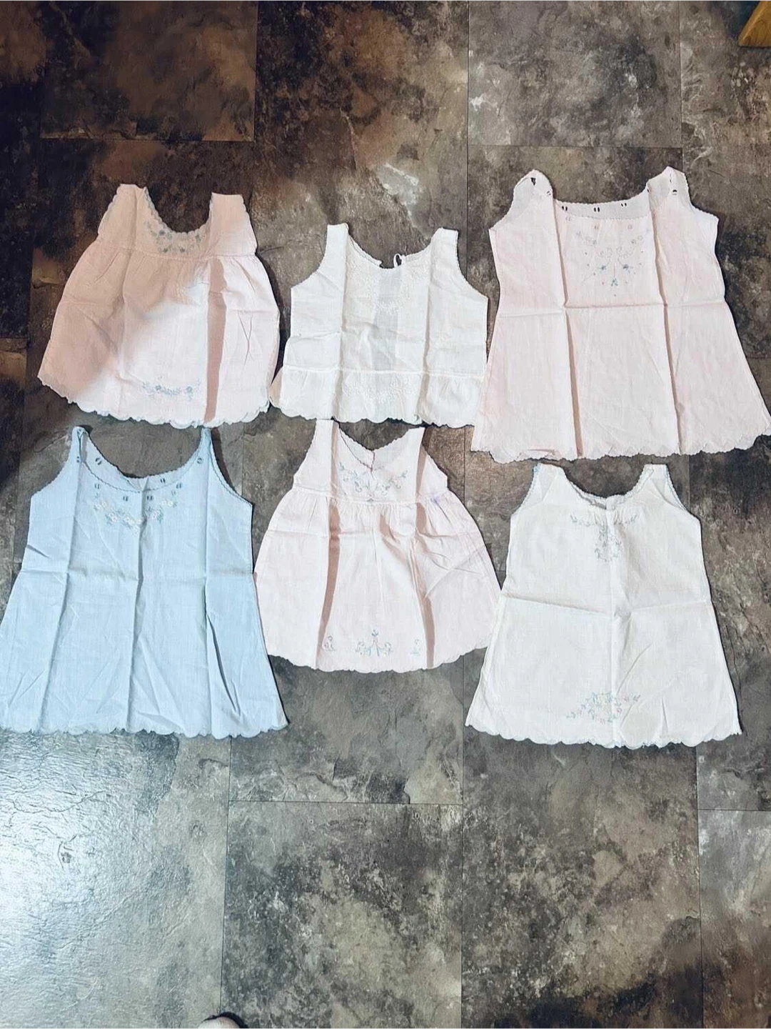 6 antique Madeira handmade Baby Dresses or tops
