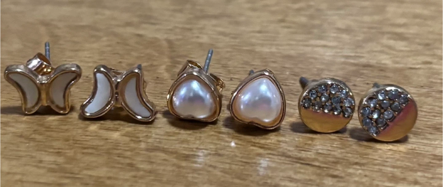Selling a cute set of stud earrings! They come in various designs, including hearts, donuts, butterflies, pearls, pineapples, and bows. Perfect for adding a little fun to your look.