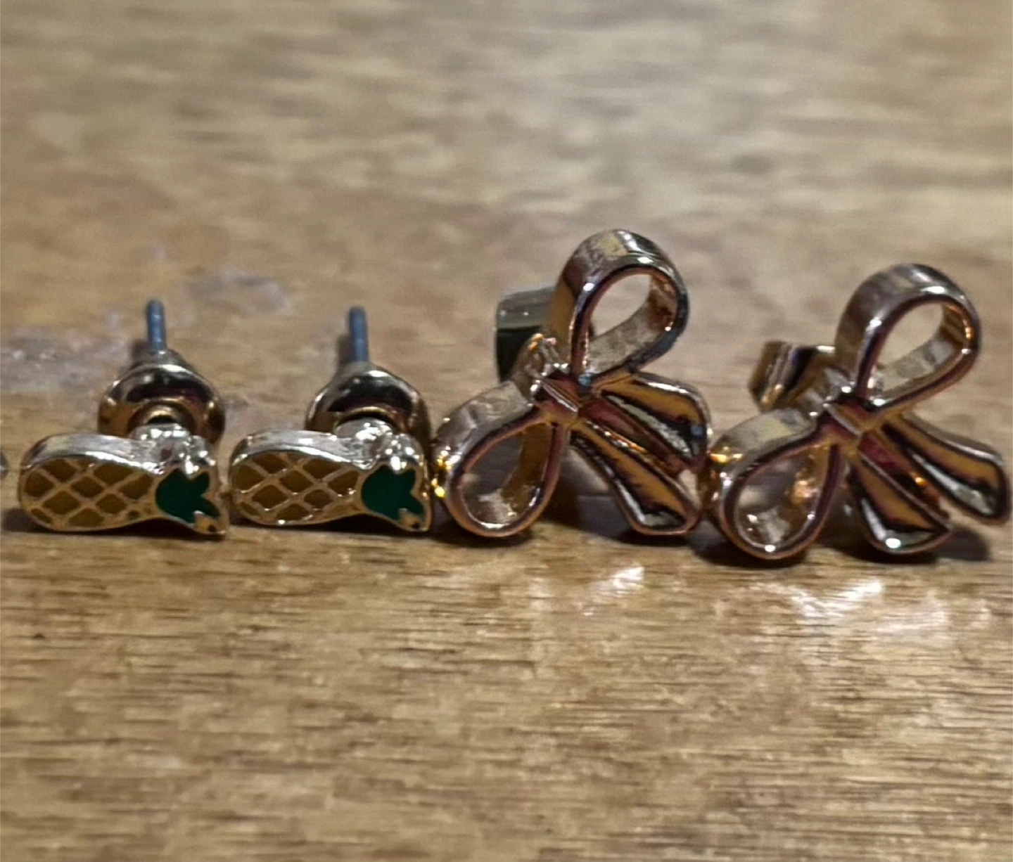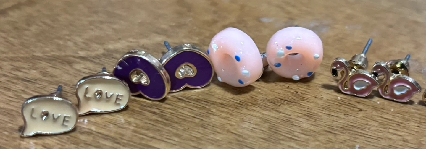 Selling a cute set of stud earrings! They come in various designs, including hearts, donuts, butterflies, pearls, pineapples, and bows. Perfect for adding a little fun to your look.