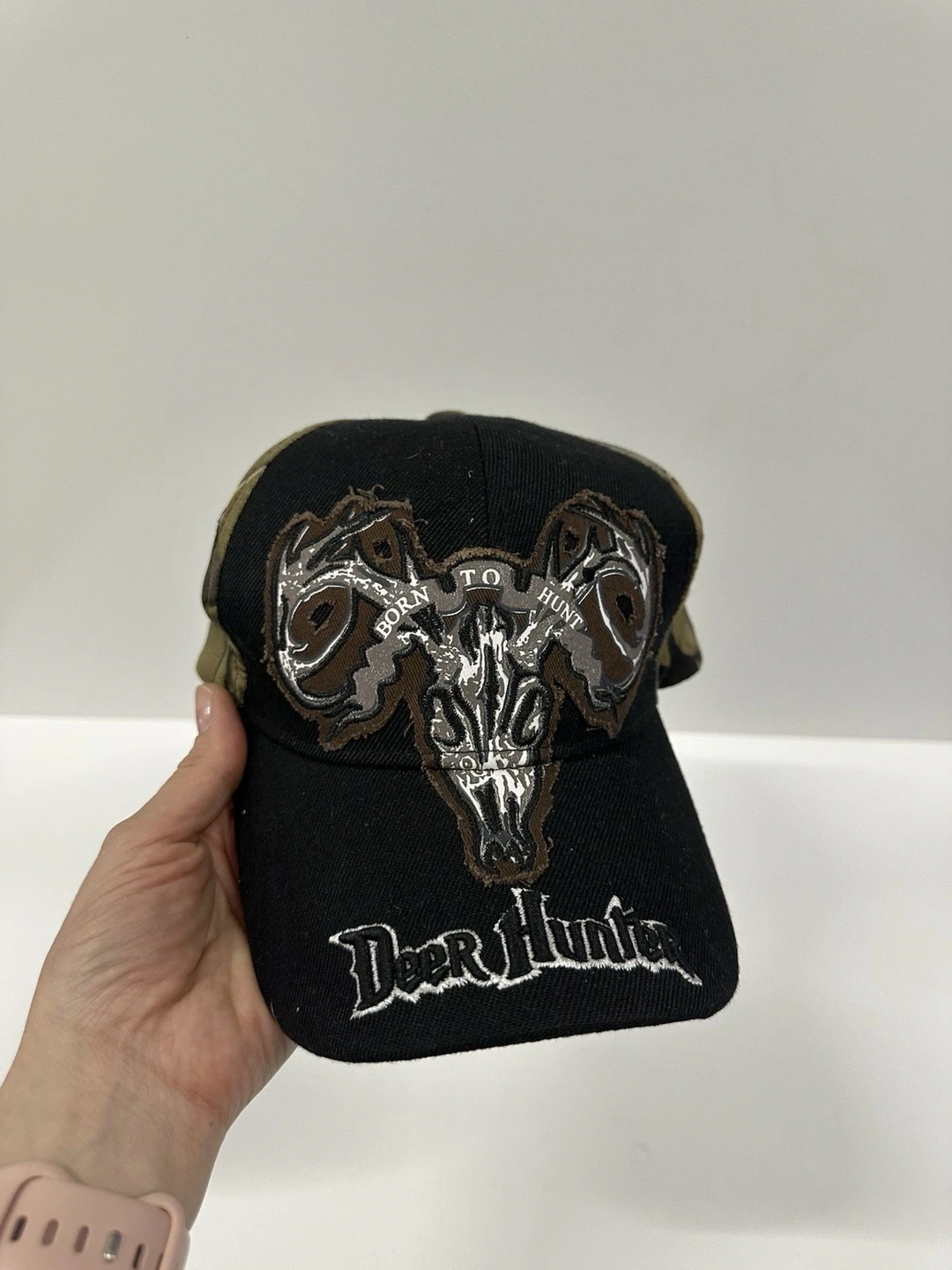 Pre-owned - Excellent. Hunter brand skull cap, multicolor, men's department, hunting theme. Features adjustable size, suitable for spring, summer, and winter. No, not handmade or vintage.