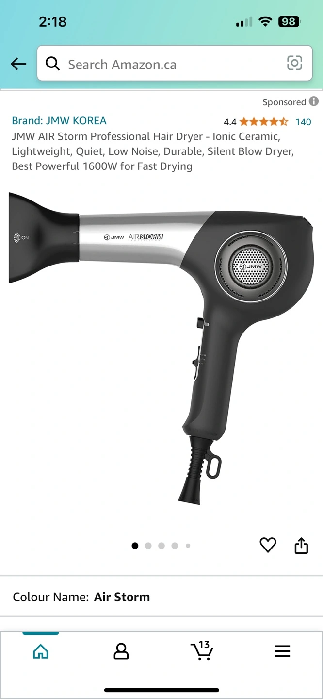 98Professional hair dryer with ionic ceramic. Lightweight, quiet, low noise, durable, silent blow dryer. Best powerful 1600W for fast drying. New in sealed box