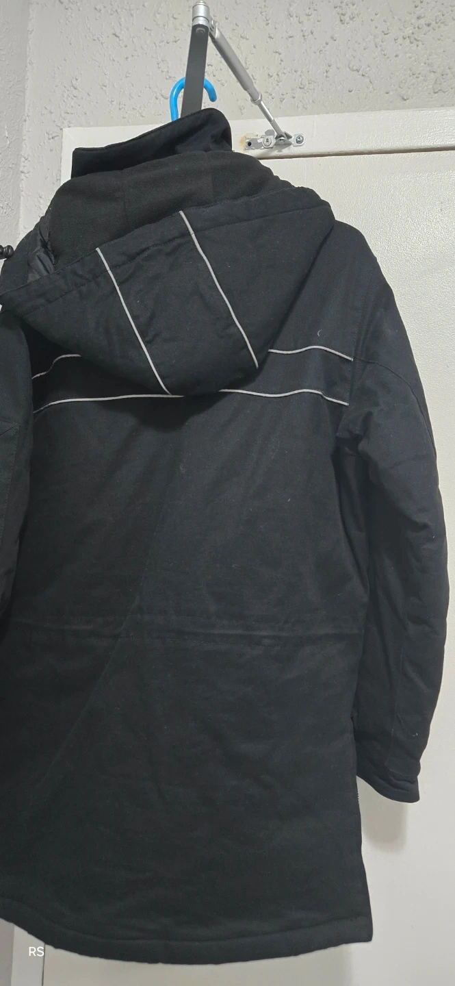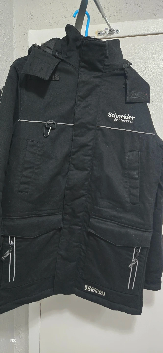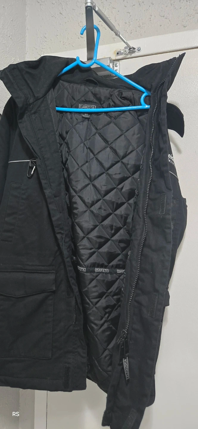 This black Dakota work jacket features a quilted lining for warmth. It has multiple pockets for storage and reflective detailing for visibility. This jacket is great for cooler weather work or outdoor activities.