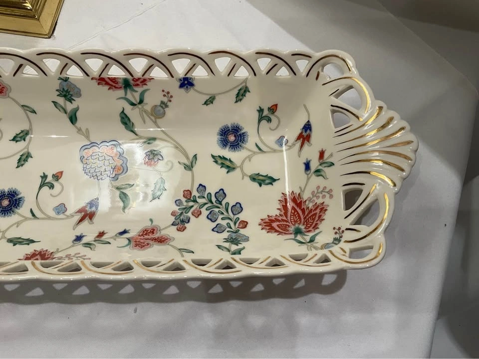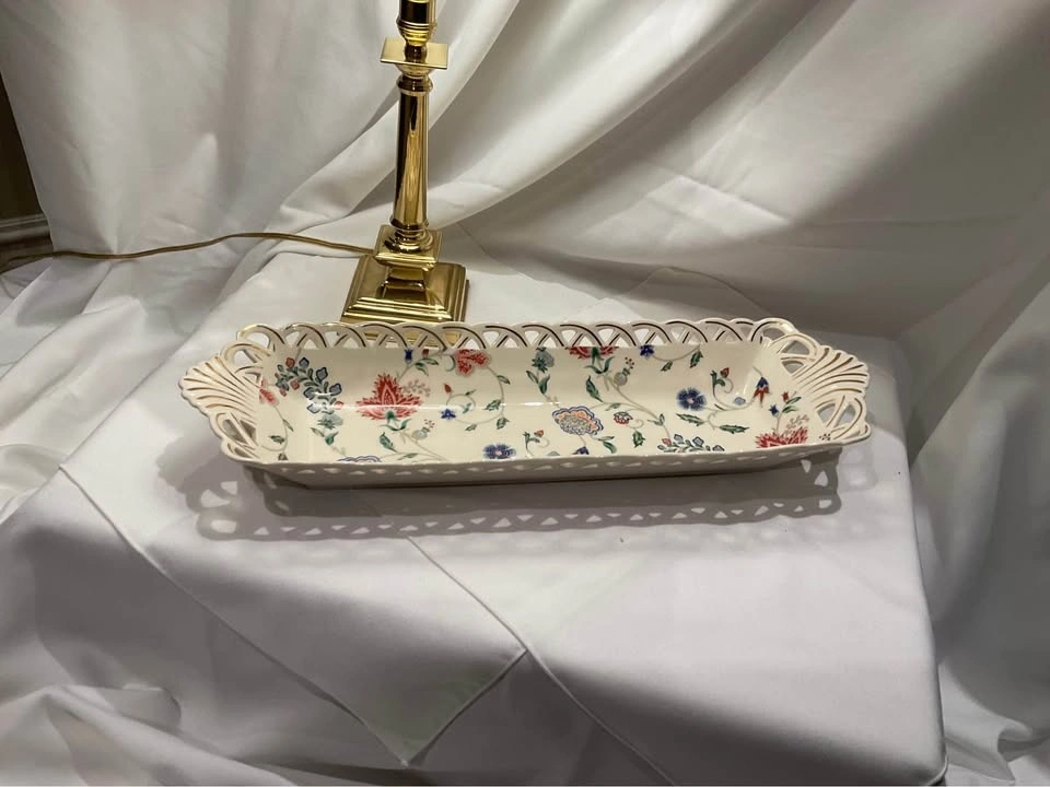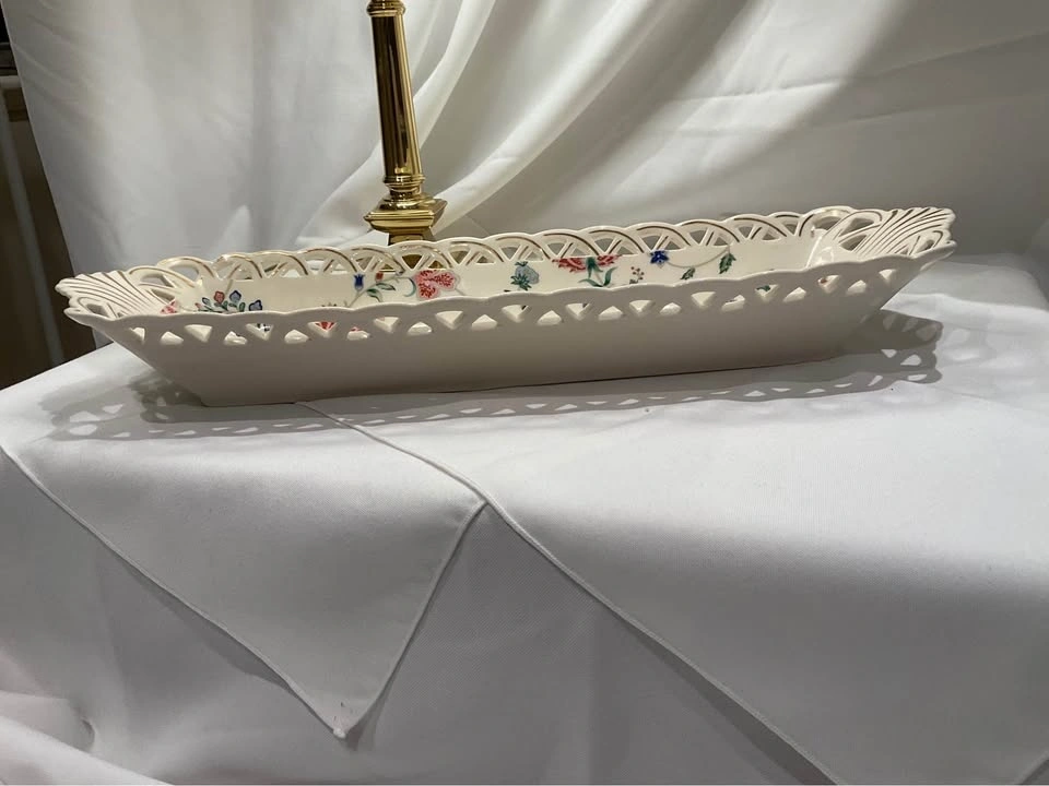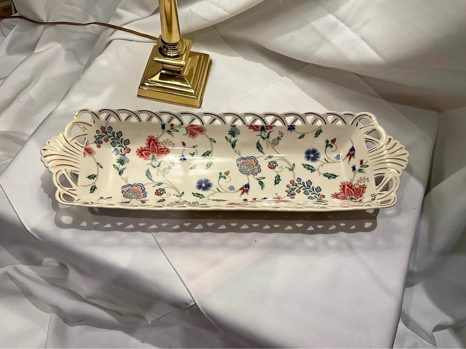 Beautiful Sky McGhie “Chatsworth “ Rectangular Bowl with delicate floral design and lattice exterior details. #320/400. From a smoke & pet free home. Located in Richmond Hill (Bathurst & King Rd).