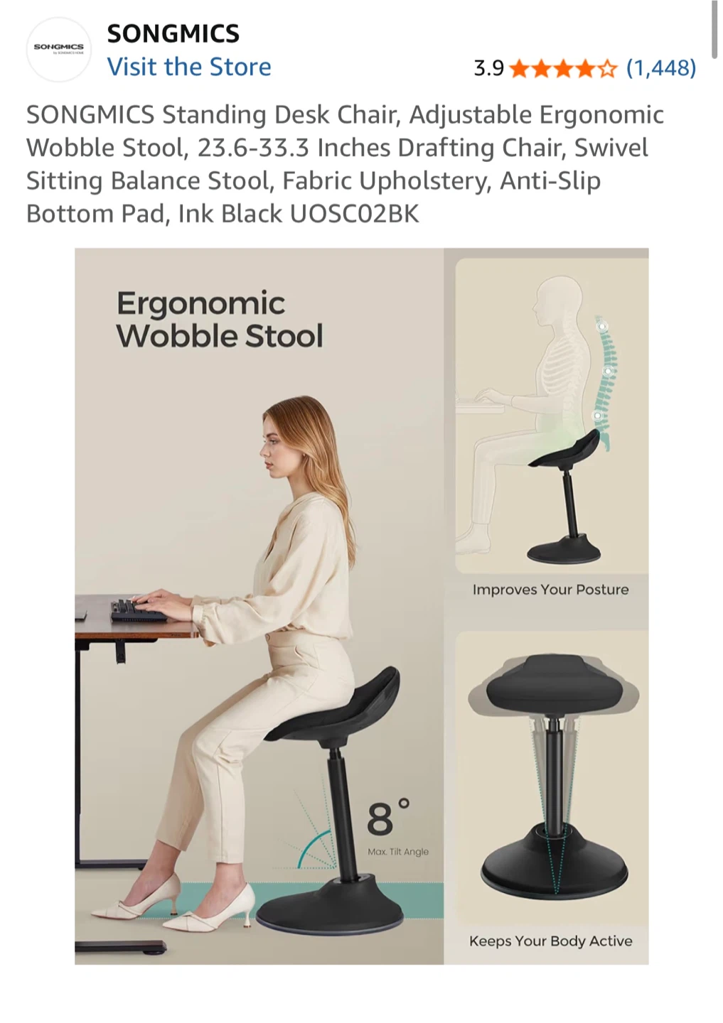 SONGMICS standing desk chair, also known as an ergonomic wobble stool.