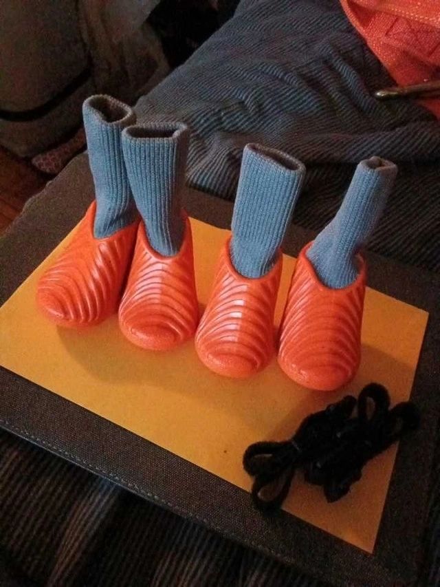 Keep your furry friend's paws protected with these orange dog boots, designed for all-weather comfort and safety. These boots are in brand new condition. They are a size small and are suitable for small dogs. I'm selling them because my dog outgrew them. Let me know if you're interested!