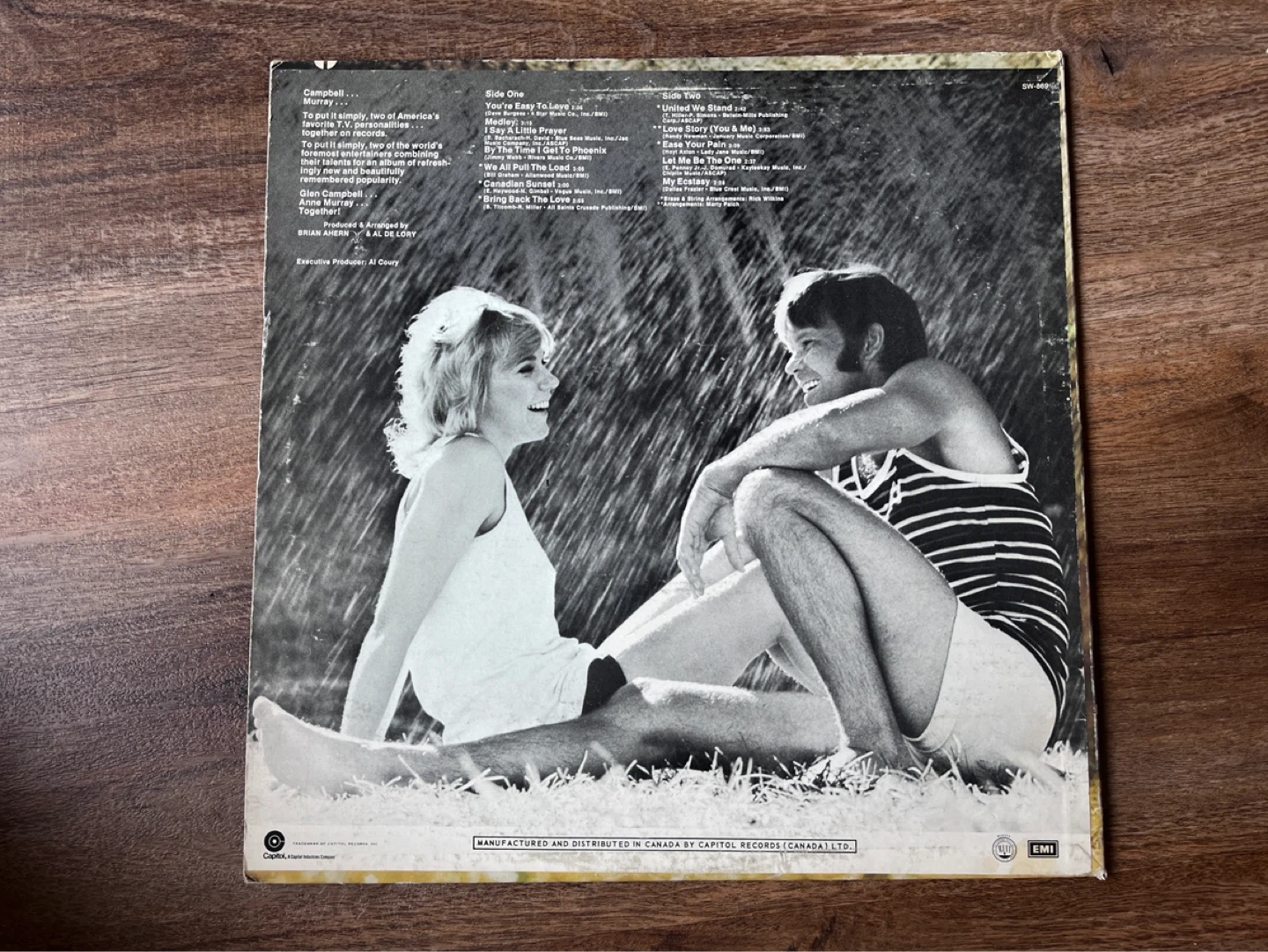 This is the Anne Murray & Glen Campbell self-titled vinyl record. It features a collection of duets and solo tracks from both artists. Manufactured in Canada by Capitol Records.