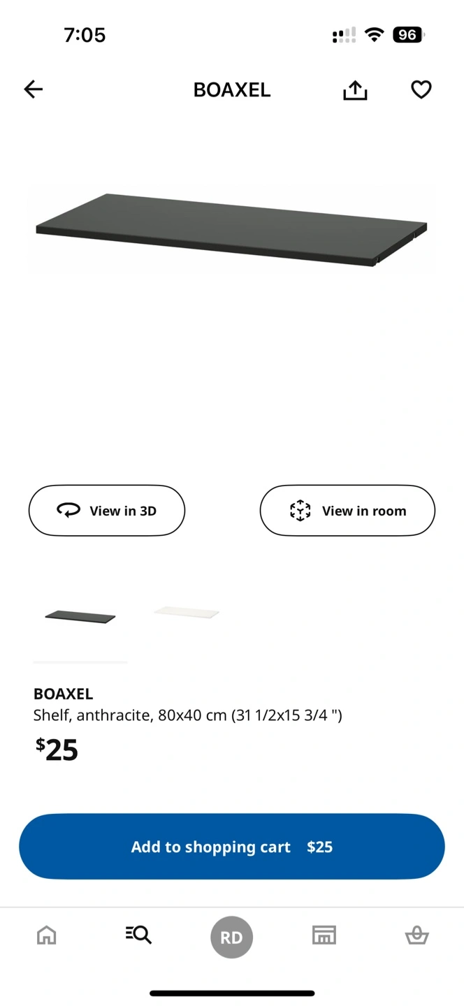 Buy & SellIKEA BOAXEL Anthracite Shelf 80x40cmIKEA BOAXEL Anthracite Shelf 80x40cm$5Selling an IKEA BOAXEL shelf in anthracite. It's 80x40 cm (31 1/2x15 3/4 ")ConditionLike newWHERE TO MEETDNA CourtyardView MapSELLERverifiedRobertNiagara16210 reviews2 chats·1 favorites·81 viewsSEND CHAT TO SELLERHi Robert! I’m interested in your listing.Hi Robert! I’m interested in your listing.Get the Karrot app to chatSign In to chat