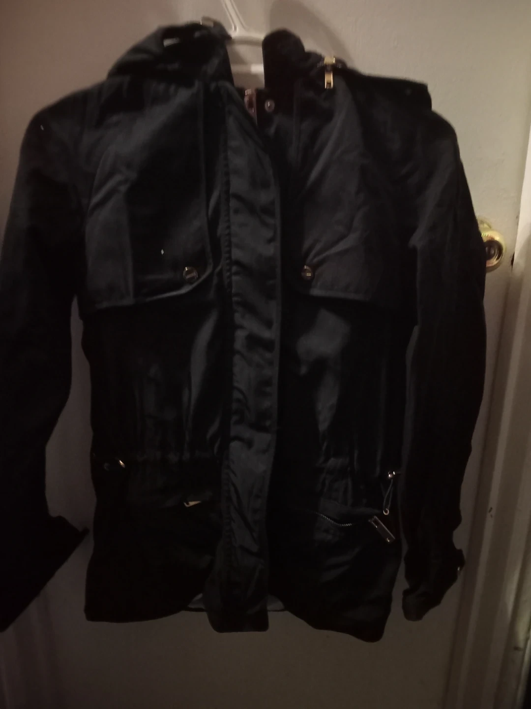 Selling a Zara Basic hooded jacket in black. It's a size small and in great condition. Perfect for layering or wearing on its own!