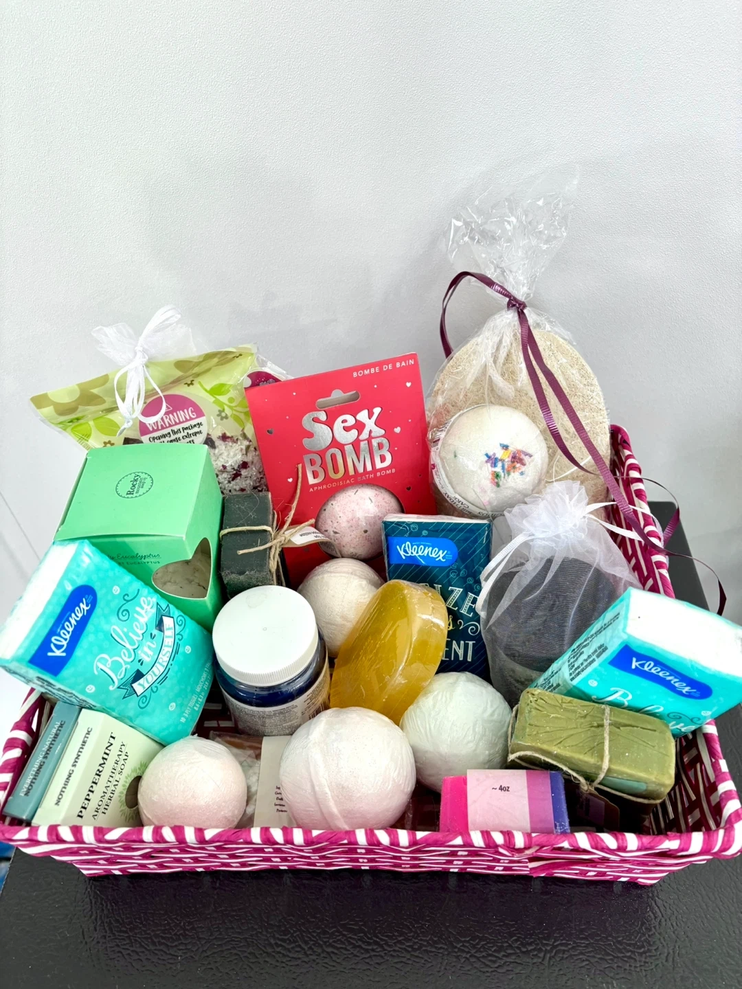 🔥This gift basket is full of lovely bath items. It includes multiple soaps, bath bombs, and other pampering essentials. It's a great way to relax and unwind!