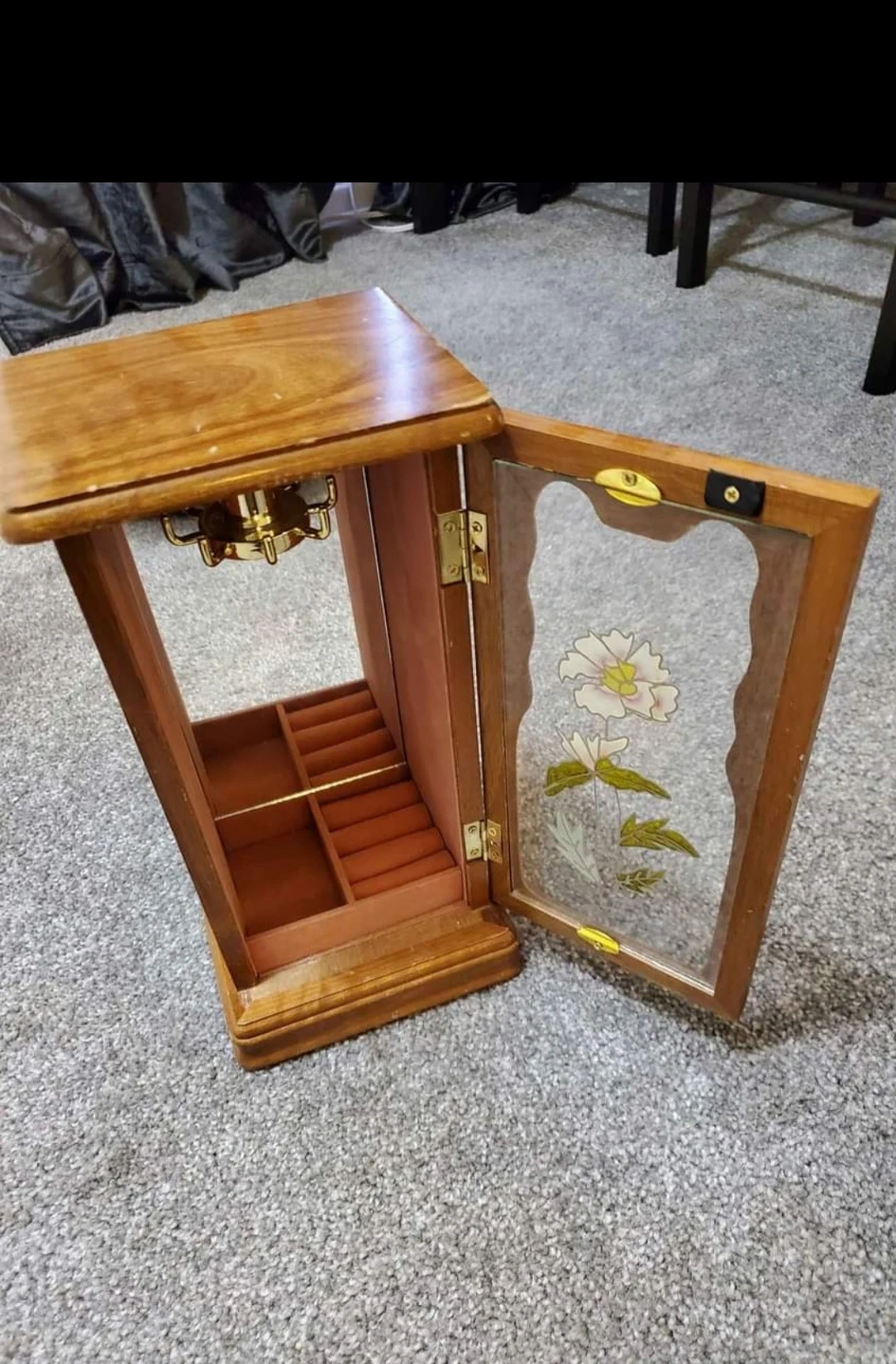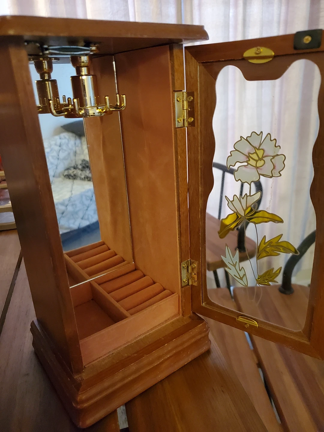Beautiful Vintage Wooden Jewellery box with necklace hanger and ring holder. Armoire, limited edition. GENUINE GUNTHER MELE dated 1979, VALUED AT $95+ in Vintage condition.