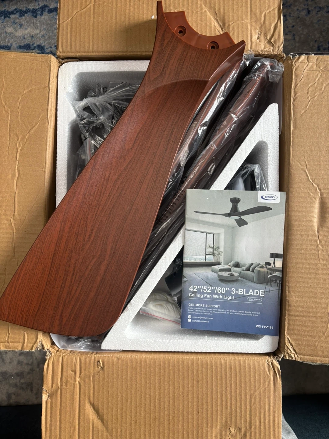 🔥Brand new 42” ceiling fan with light. Still in original packaging, never installed. Modern 3-blade design, great for bedrooms or living spaces.