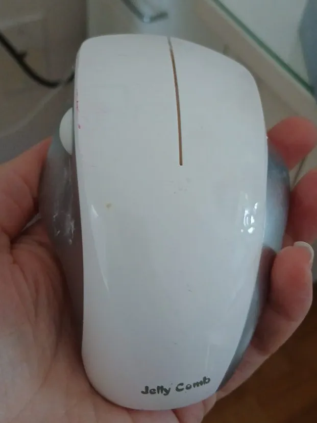 Selling a Jelly Comb wireless mouse. It's white and in used condition, with some minor signs of wear, like a few marks. Still works great!