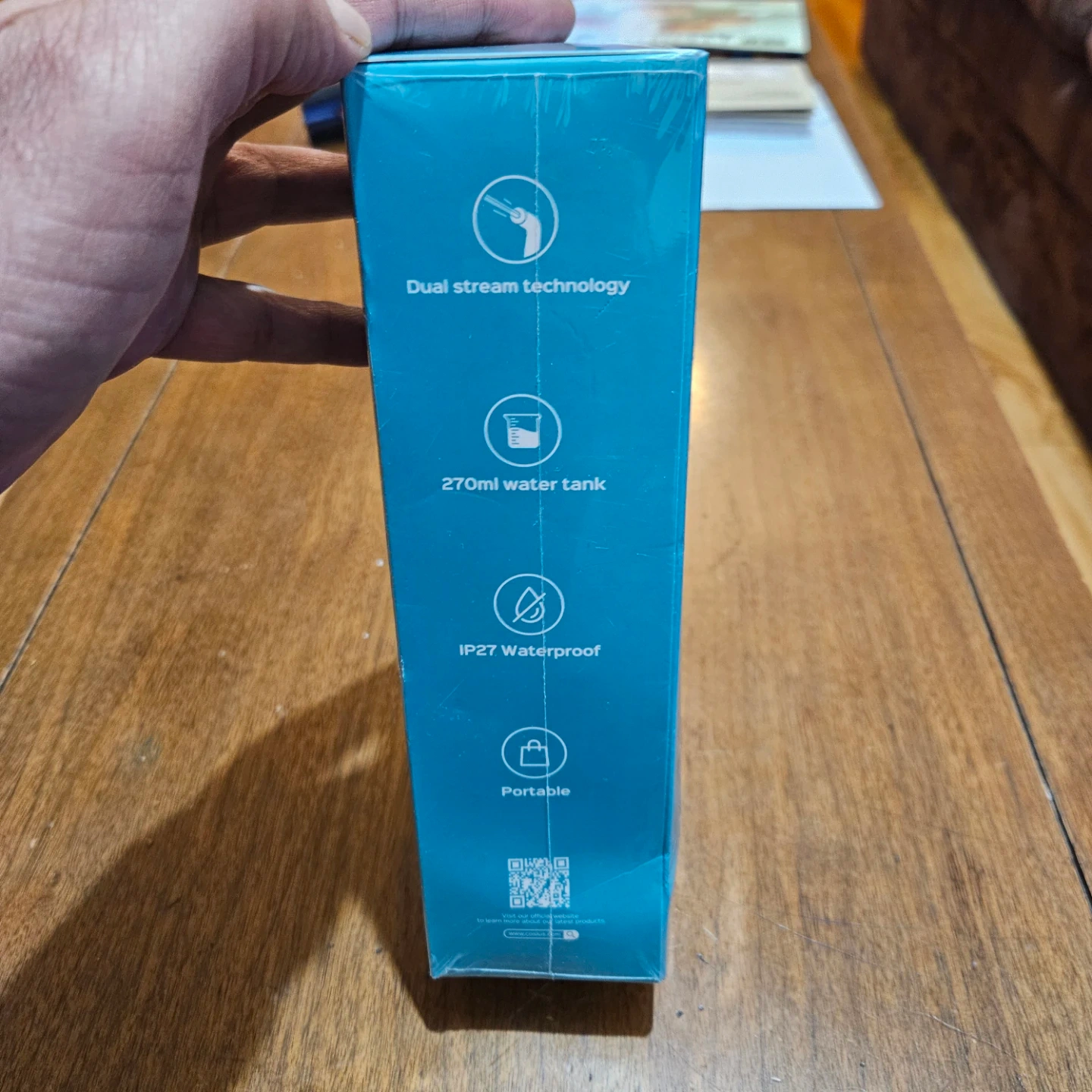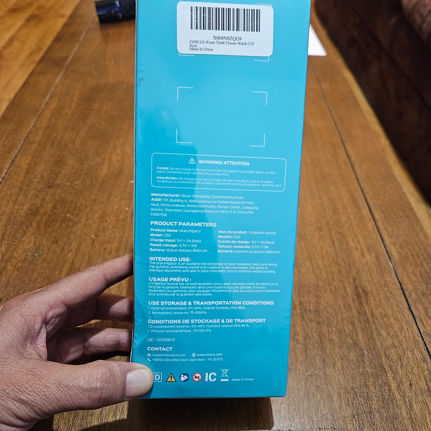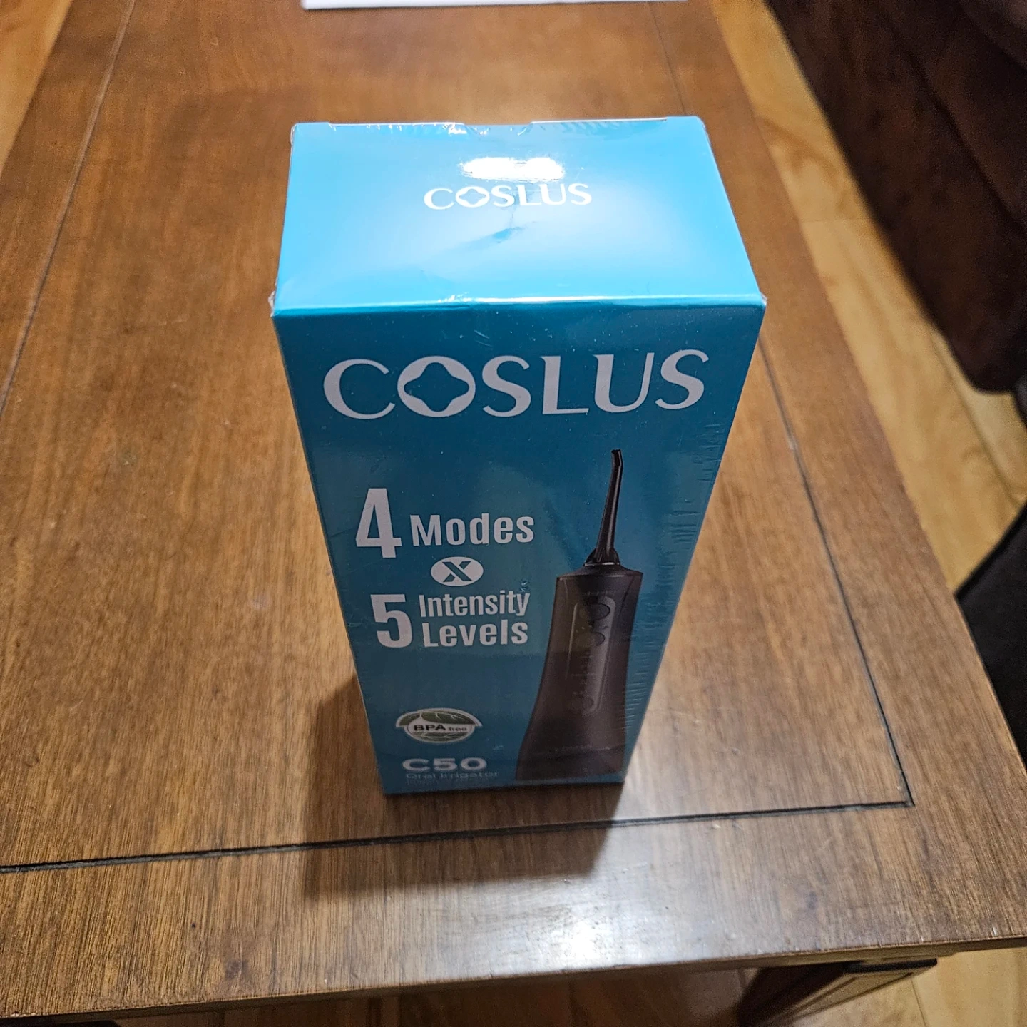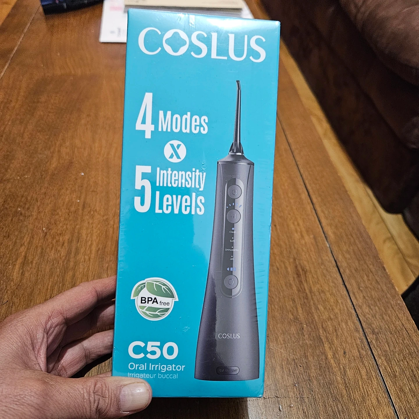 This COSUS Oral Irrigator C50 has 4 modes and 5 intensity levels. It features dual stream technology and a 270ml water tank. The device is IP27 waterproof and portable. BPA free.