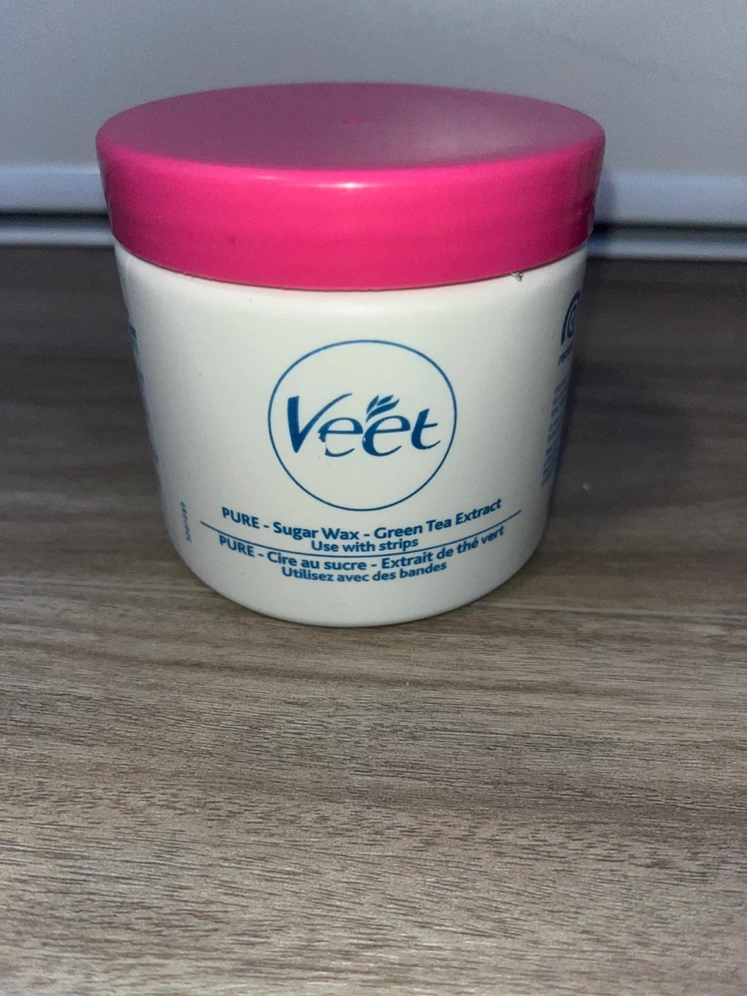 Veet Pure Sugar Wax uses a formula with Green Tea Extract. It's designed for use with strips. This product is for hair removal.