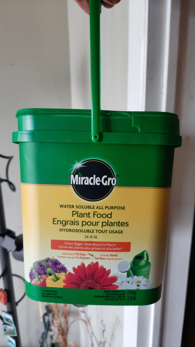 Water-soluble all-purpose plant food from Miracle-Gro! easy to feed. Giving it away cause I got way too much for my indoor garden lol!