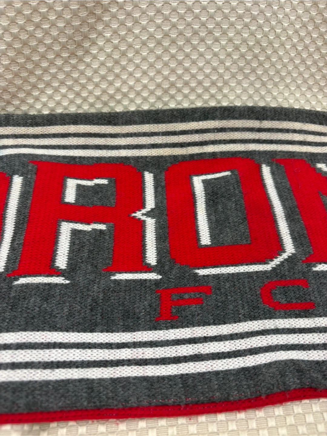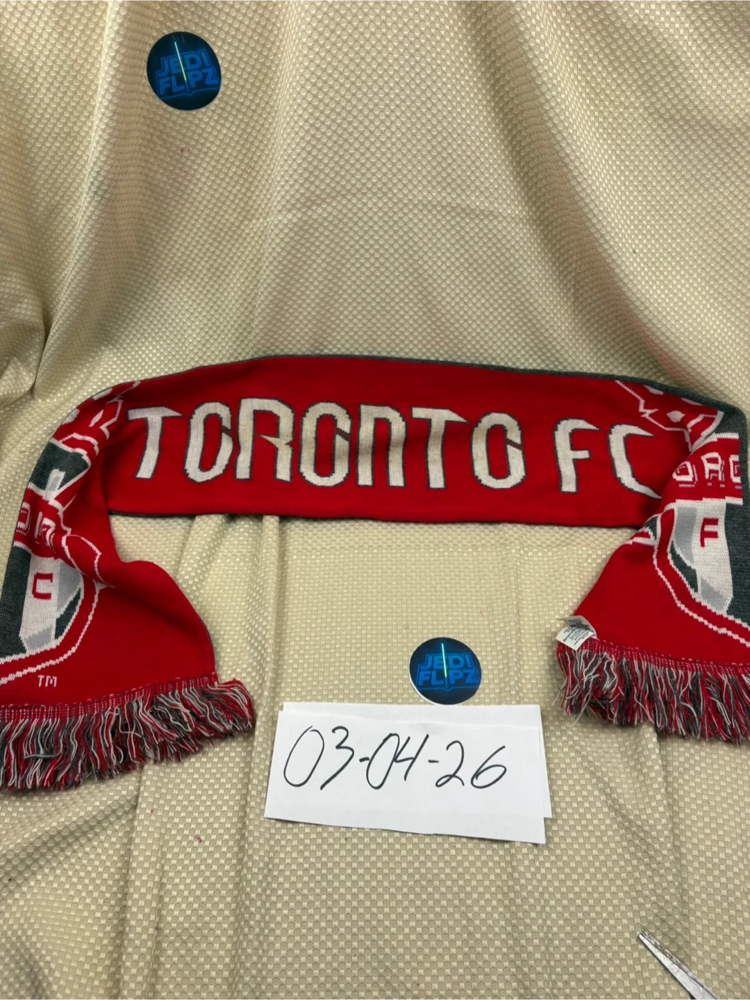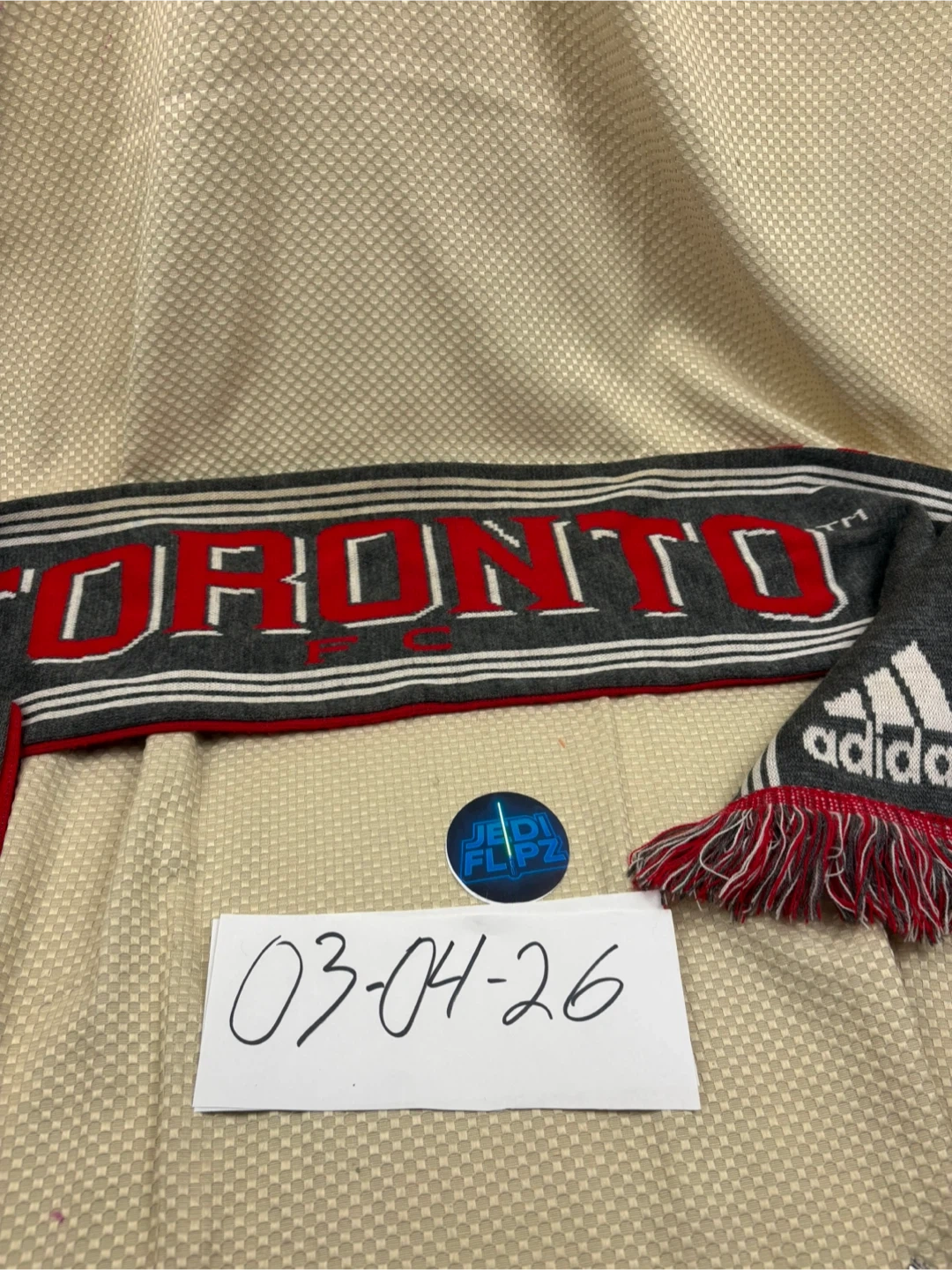 Keep warm with this Adidas knit scarf featuring Toronto FC colours and branding. It's perfect for cheering on your team during colder game days. The scarf has a fringe detail on the ends.