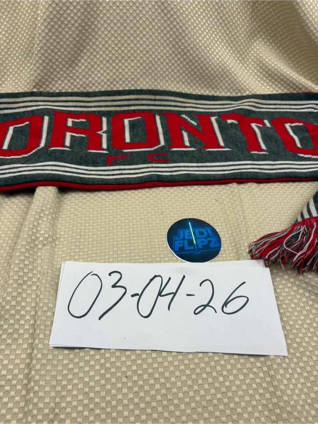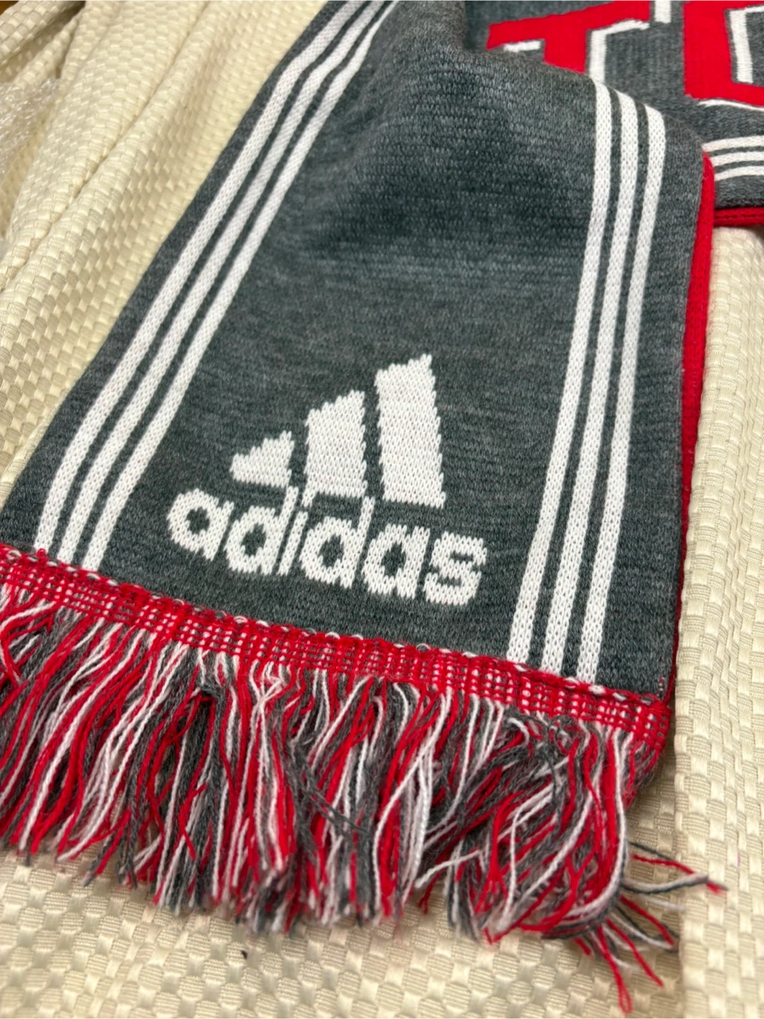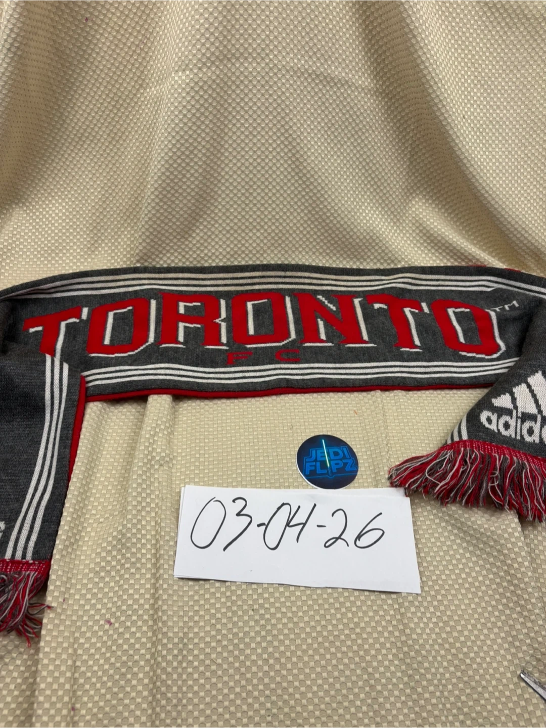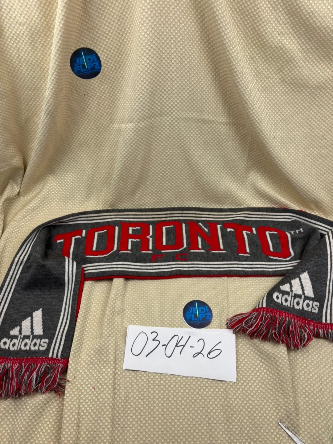 Keep warm with this Adidas knit scarf featuring Toronto FC colours and branding. It's perfect for cheering on your team during colder game days. The scarf has a fringe detail on the ends.