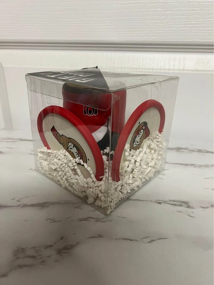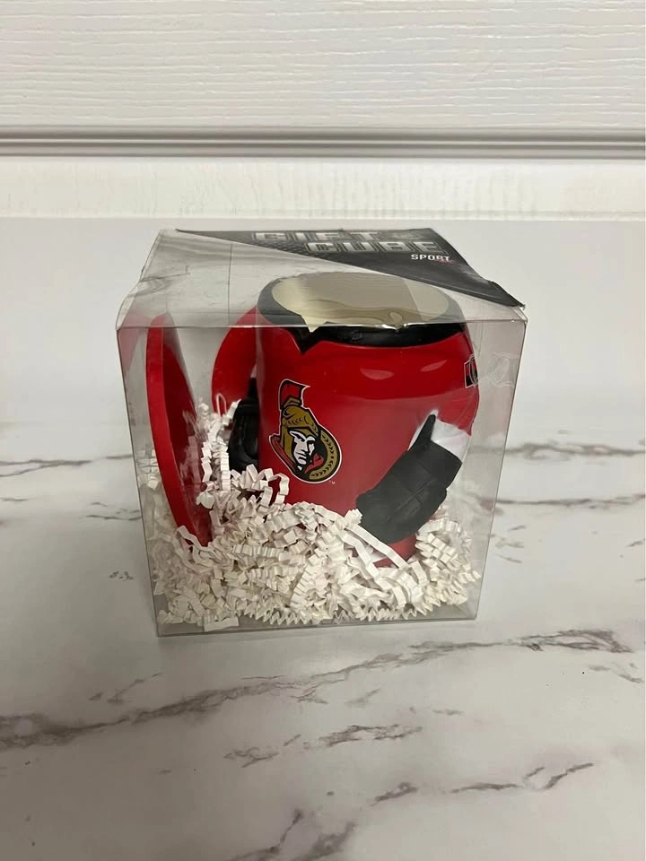 Official NHL Ottawa Senators gift set includes Koozie and matching coasters. Set features team logo and colors in original packaging. Red mug has hockey glove detail on handle. Perfect for any Sens fan. Pickup at Bathurst and Centre, Yonge and Steeles or by Finch Station. Cash only please! :)