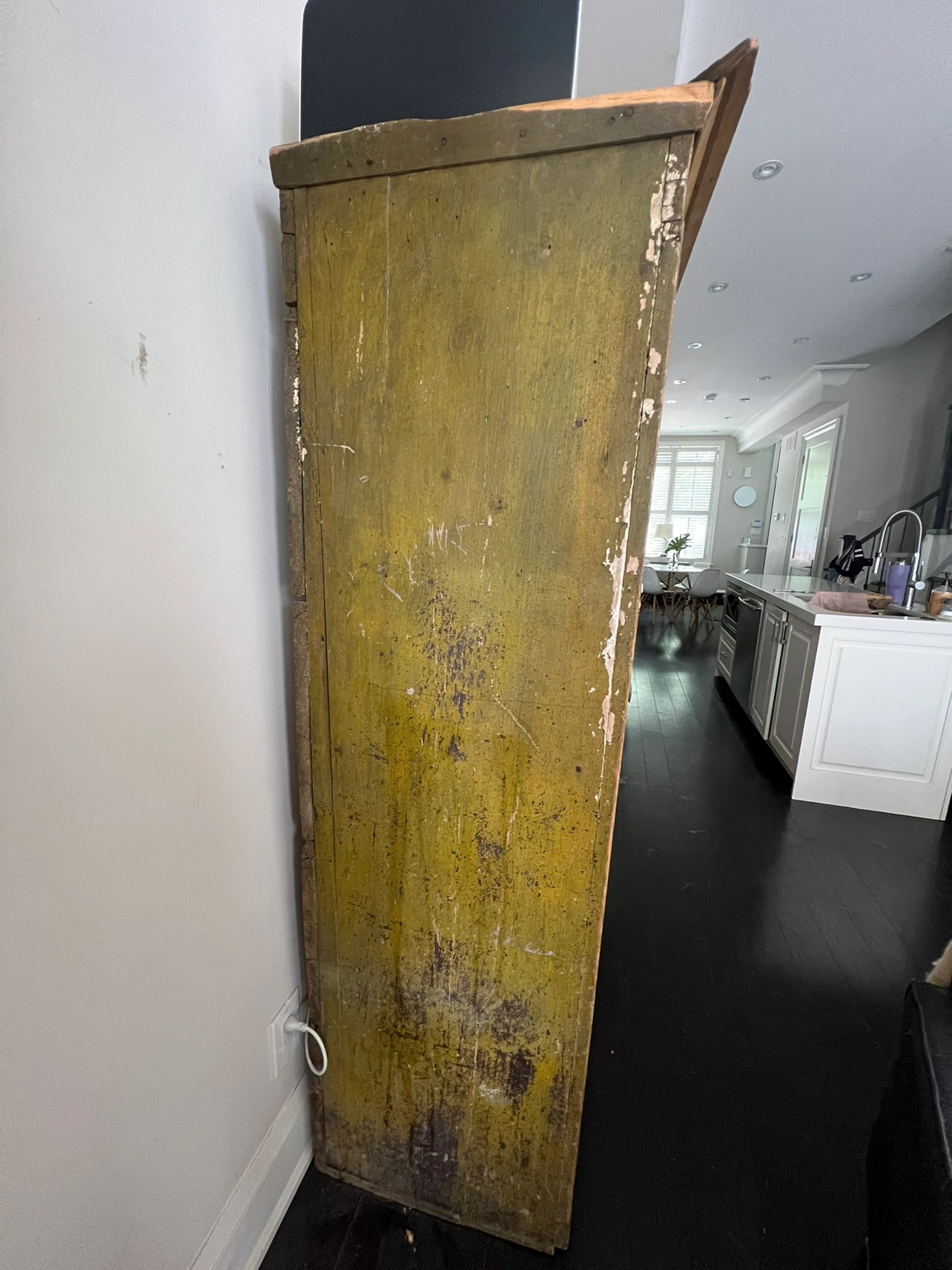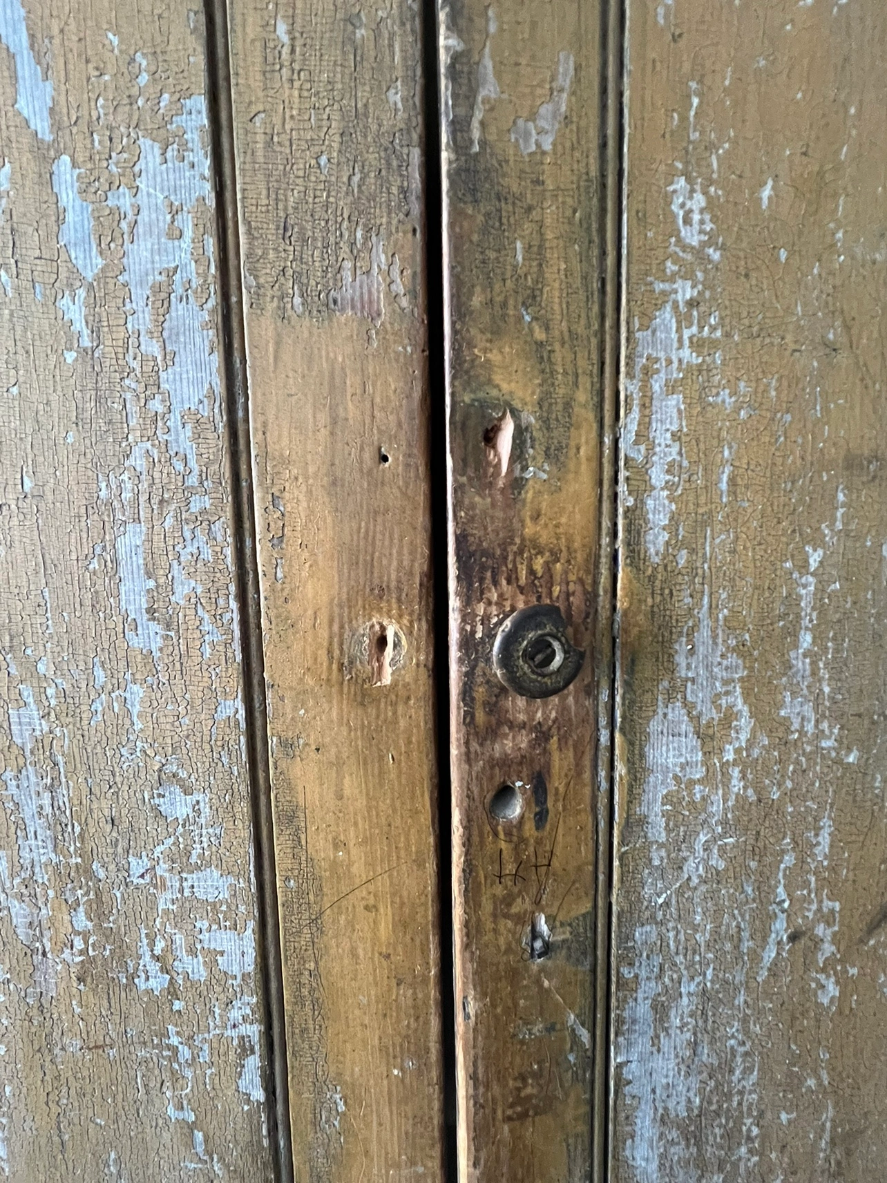 Weathered yellow paint. In state which it was purchased. Please see photos.