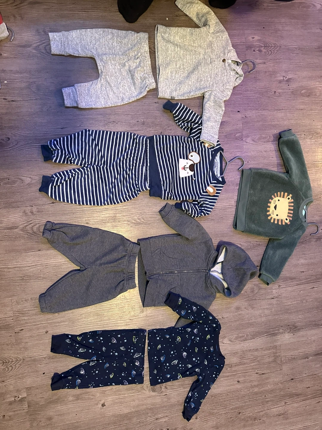 4 Matching sets 3-6 Months, green lion t-shirt 3-6 Months. They are all in like new condition only one set was gently used.