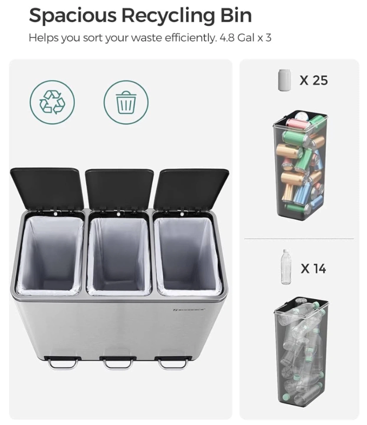 SONGMICS Spacious Recycling Bin - 4.8 Gal x 3
