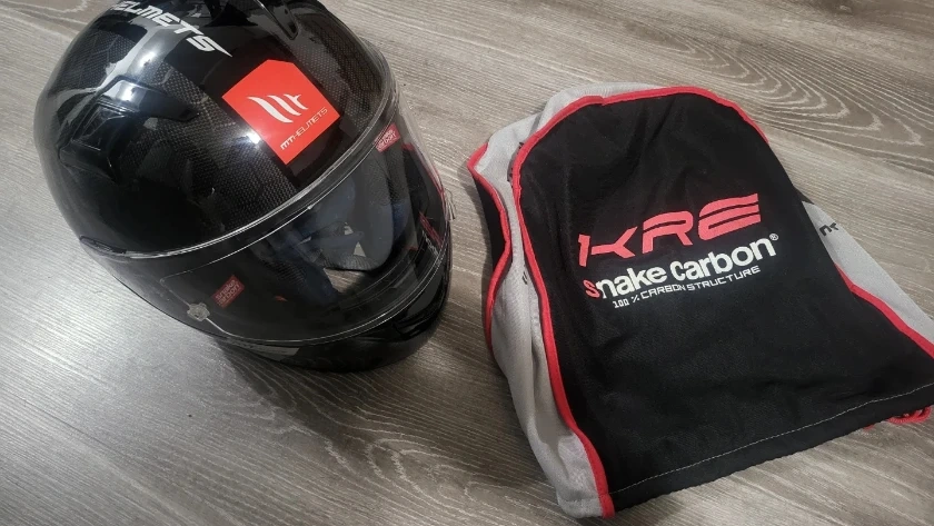 Selling my KRE full-face motorcycle helmet. It features a carbon fibre construction for a lightweight and strong build. Comes with a helmet bag. (Size Lg)