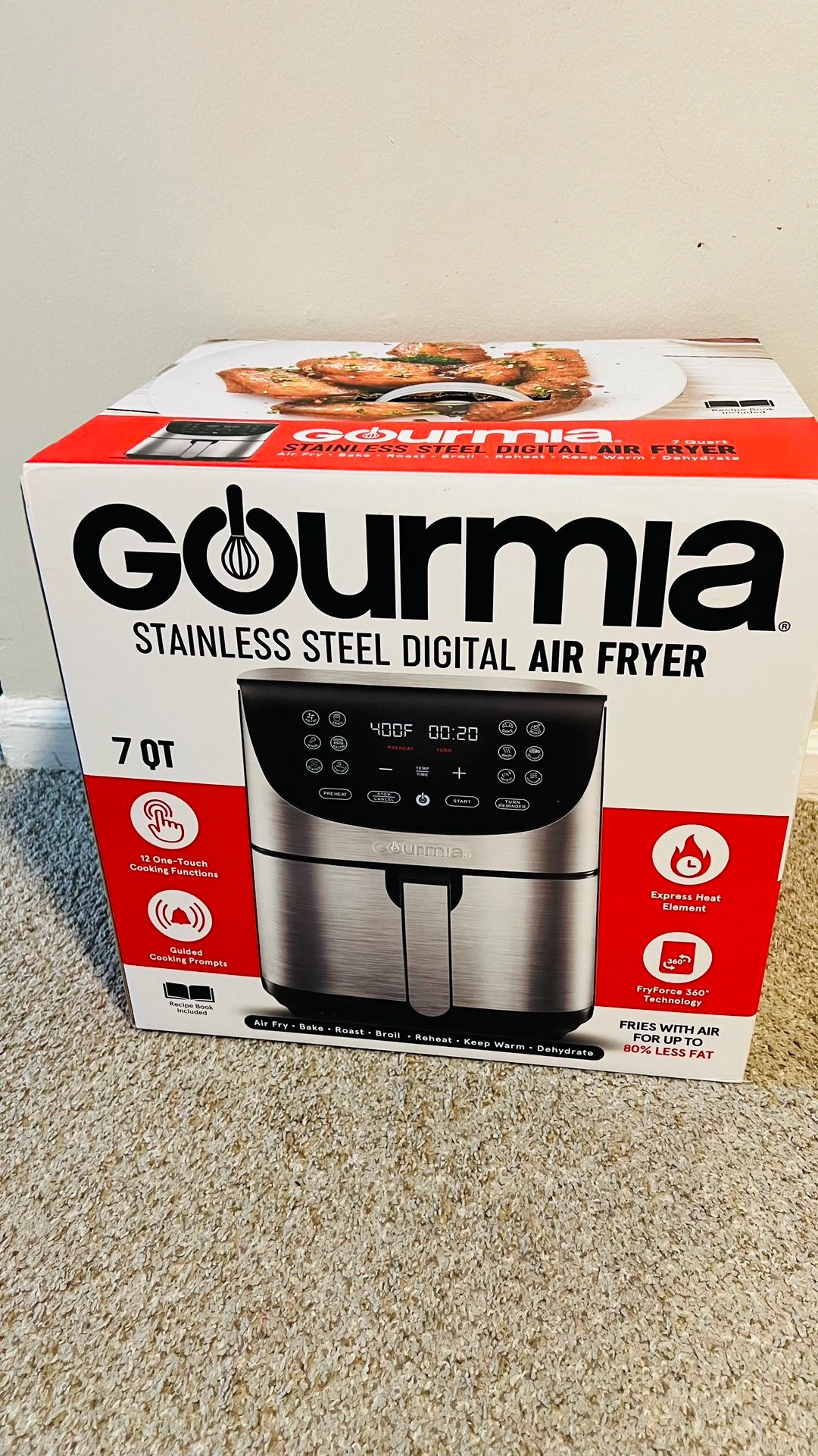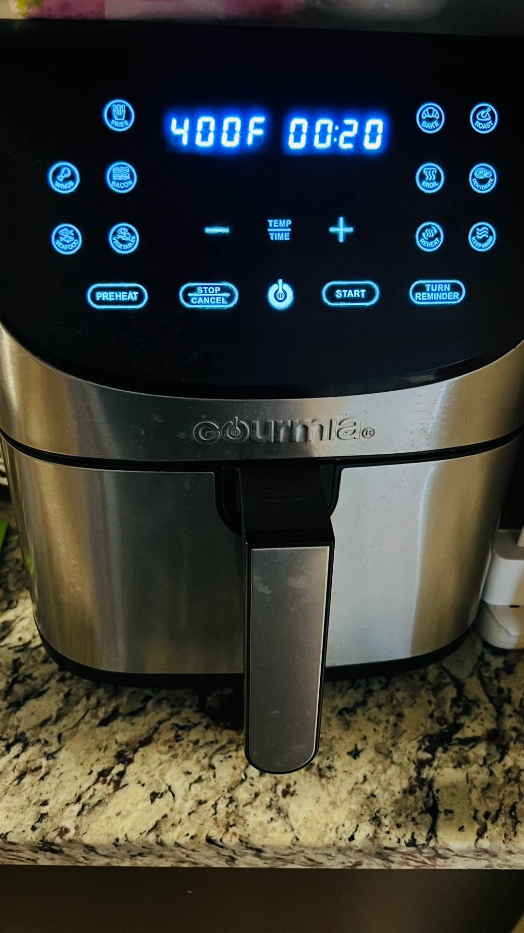 Features 12 one-touch cooking functions and an express heat element. In excellent condition. Move out sale, everything must go. Please check other items as well. Color: Black. Brand: Gourmia.