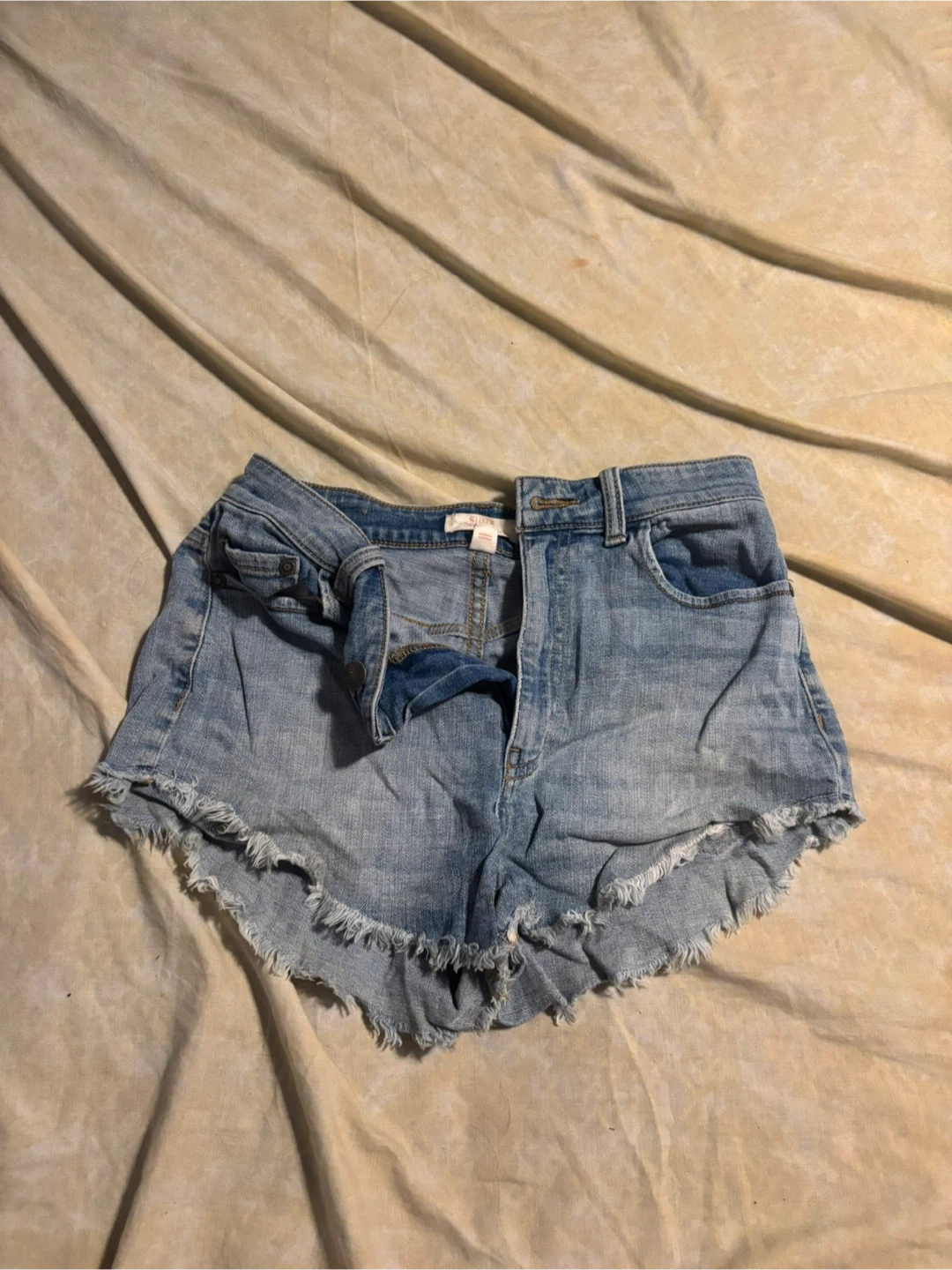 These are Sun & Shadow denim cutoff shorts. They're a size 5. Made from a soft denim material.