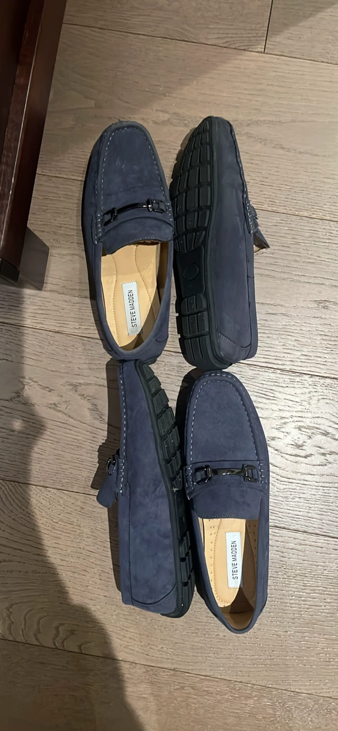 Selling a pair of Steve Madden loafers in a lovely blue suede! They feature a classic design with a metal accent. These are super comfy and stylish for everyday wear!