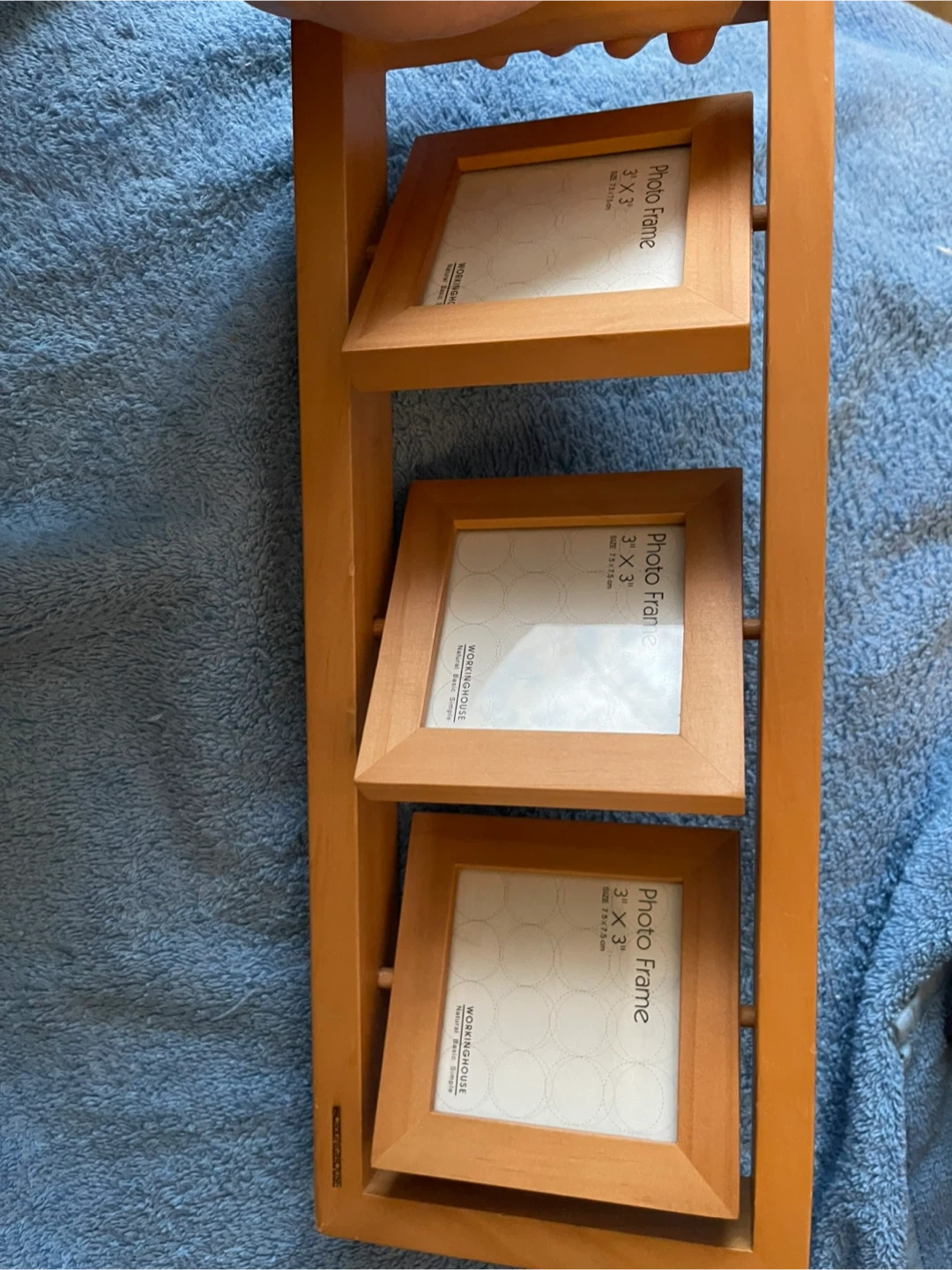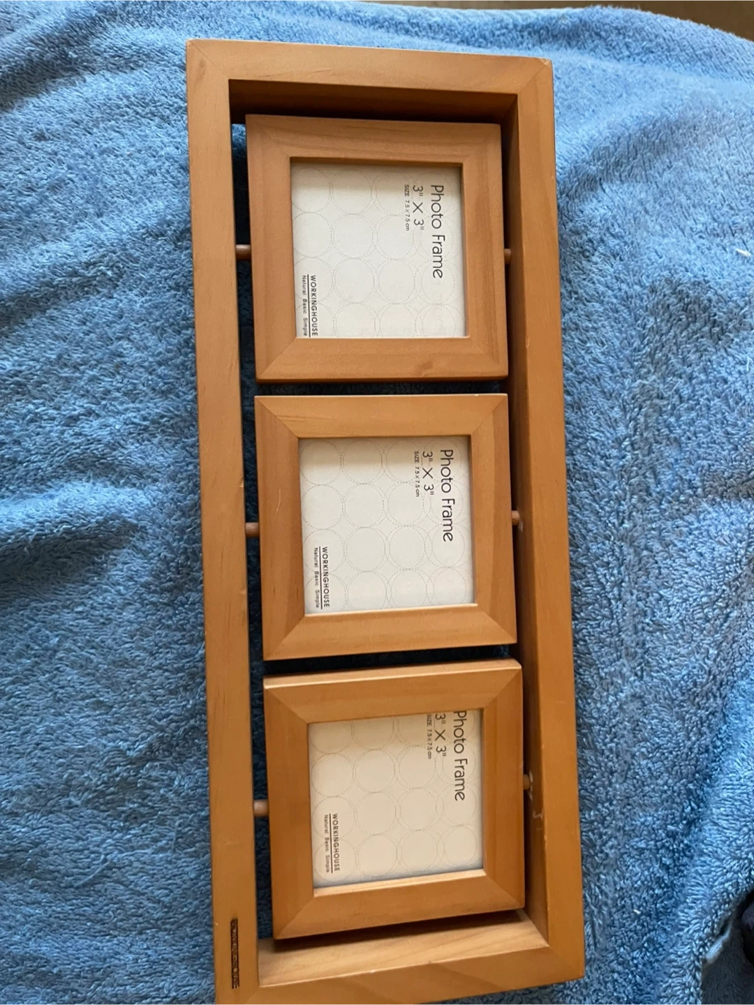 Selling a WORKINGHOUSE photo frame that holds three 3" x 3" photos. It's a lovely way to display your favourite memories! The frame is in great condition and would look great in any room.