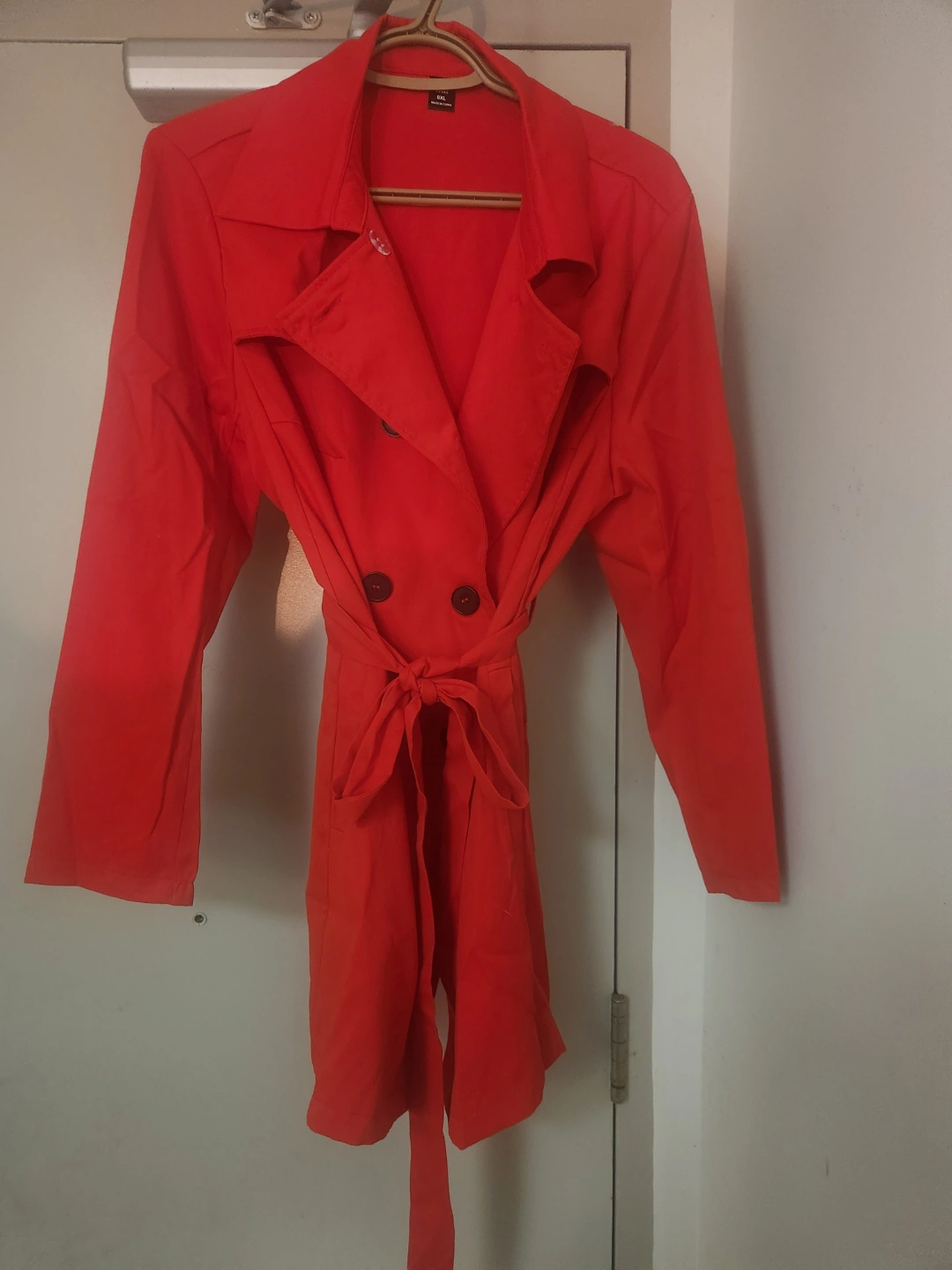 New Stylish red trench coat. Double-breasted design. Features a self-tie waist belt. Long sleeves. Classic look.paid 40 Asking $25 pick up only ,cash preferred.