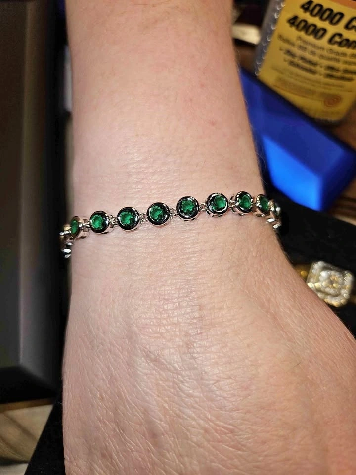 Buy & SellSterling Silver Tennis Bracelet Green Zircon Stones $80Sterling Silver Tennis Bracelet Green Zircon Stones $80$80Brand new ladies sterling silver bracelet with emerald-colored stones. 8 inches with a 7-inch extension. Stamped 925. Comes in a nice box.WHERE TO MEETCheck LocationView MapSELLERverifiedAbeDover600 reviews0 chats·0 favorites·4 viewsSEND CHAT TO SELLERHi Abe! I’m interested in your listing.Hi Abe! I’m interested in your listing.Get the Karrot app to chatSign In to chat