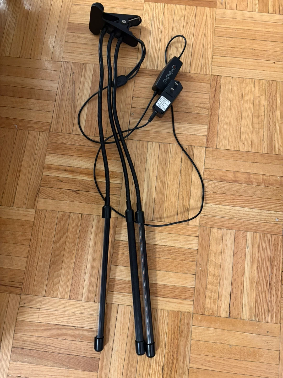Selling a LED grow light with a clip. It features three adjustable light bars and a control panel for easy operation ( pink/blue or mixed light).