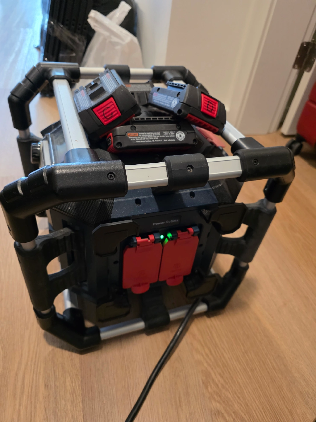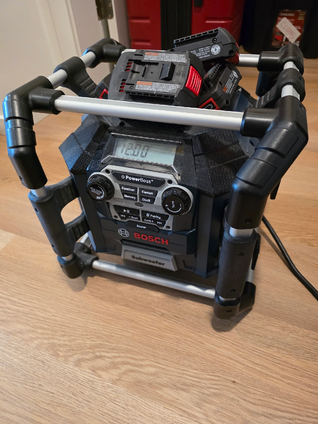 65Selling a Bosch PowerBoss jobsite radio. It's an 18V radio/charger/digital media player all in one! Has Bluetooth connectivity, a subwoofer, and power outlets. Great for the jobsite or backyard. Comes with 4 batteries.
