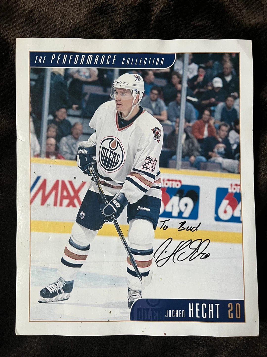 41Selling a Jochen Hecht #20 trading card from the Edmonton Oilers. It's part of The Performance Collection and features an autograph. A great collectible for any Oilers fan!