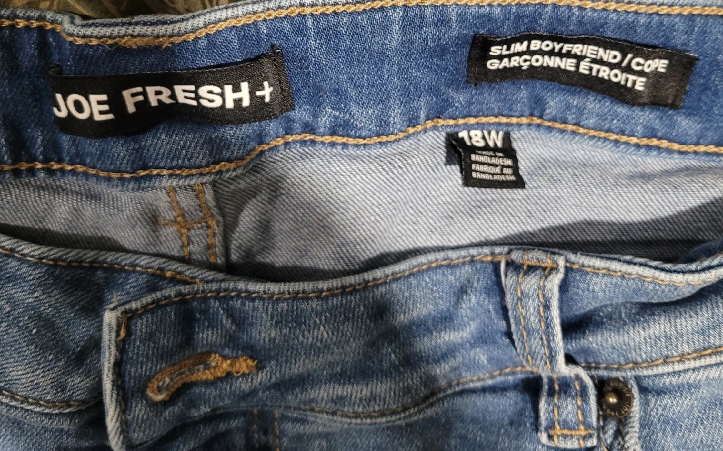 15Selling a pair of Joe Fresh Slim Boyfriend jeans in size 18W. They're in good condition and feature a stylish, slightly distressed look. Perfect for a casual, comfortable fit!