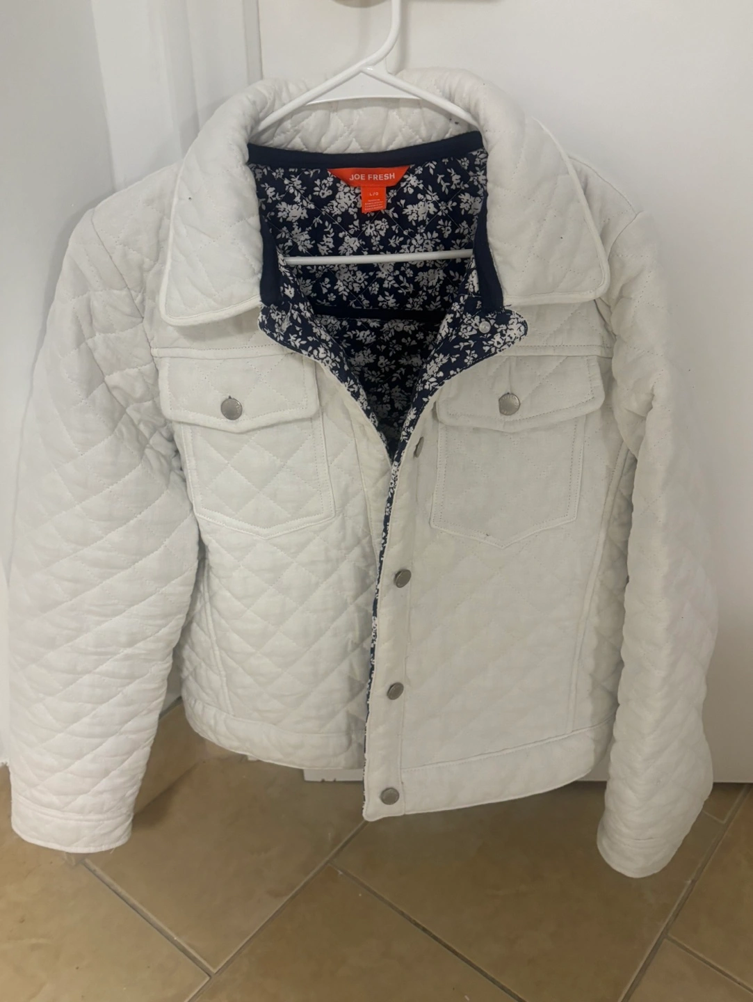 61White quilted jacket with a floral lining. Size L/G. Only worn once.