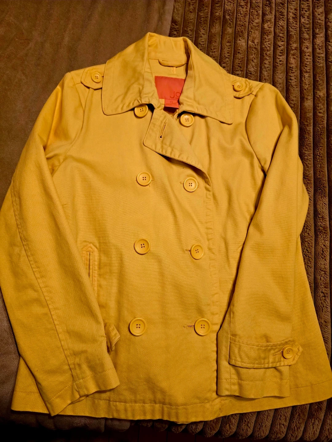 213A stylish yellow double-breasted jacket from Joe Fresh! It's in great condition and ready for a new home. Perfect for adding a pop of colour to your wardrobe.