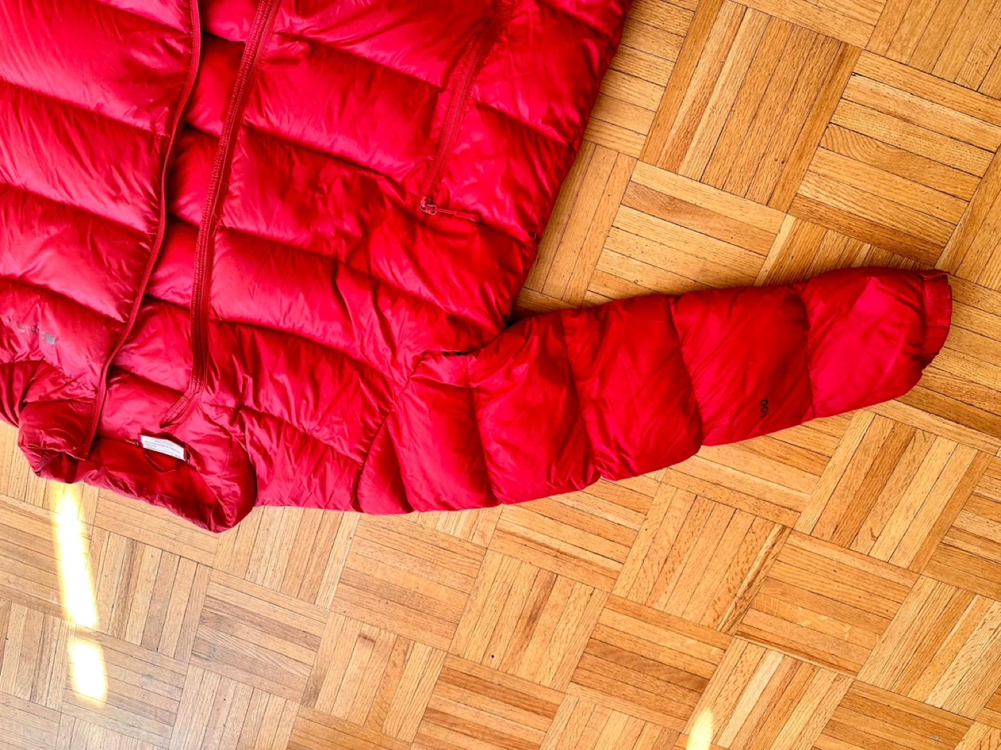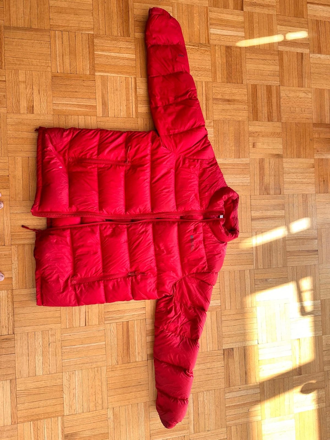 Lightweight red puffer jacket. Full zip closure. Long sleeves. Excellent for colder weather. Size XXL